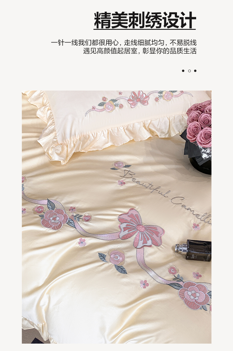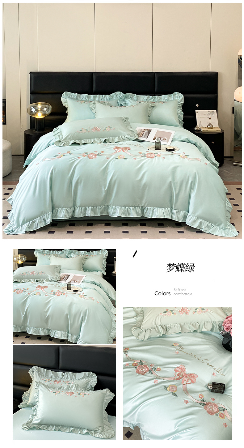 (总)金麦家纺 2025新款冰丝绣花四件套-心愿系列,心愿粉色,心愿燕麦奶,心愿天空蓝,心愿淡雅绿,心愿浅灰