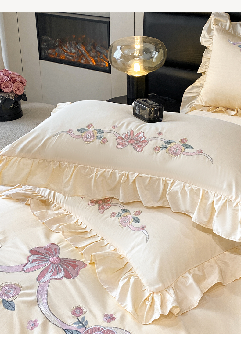 金麦家纺 2024新款全棉刺绣花边系列四件套 梦蝶黄