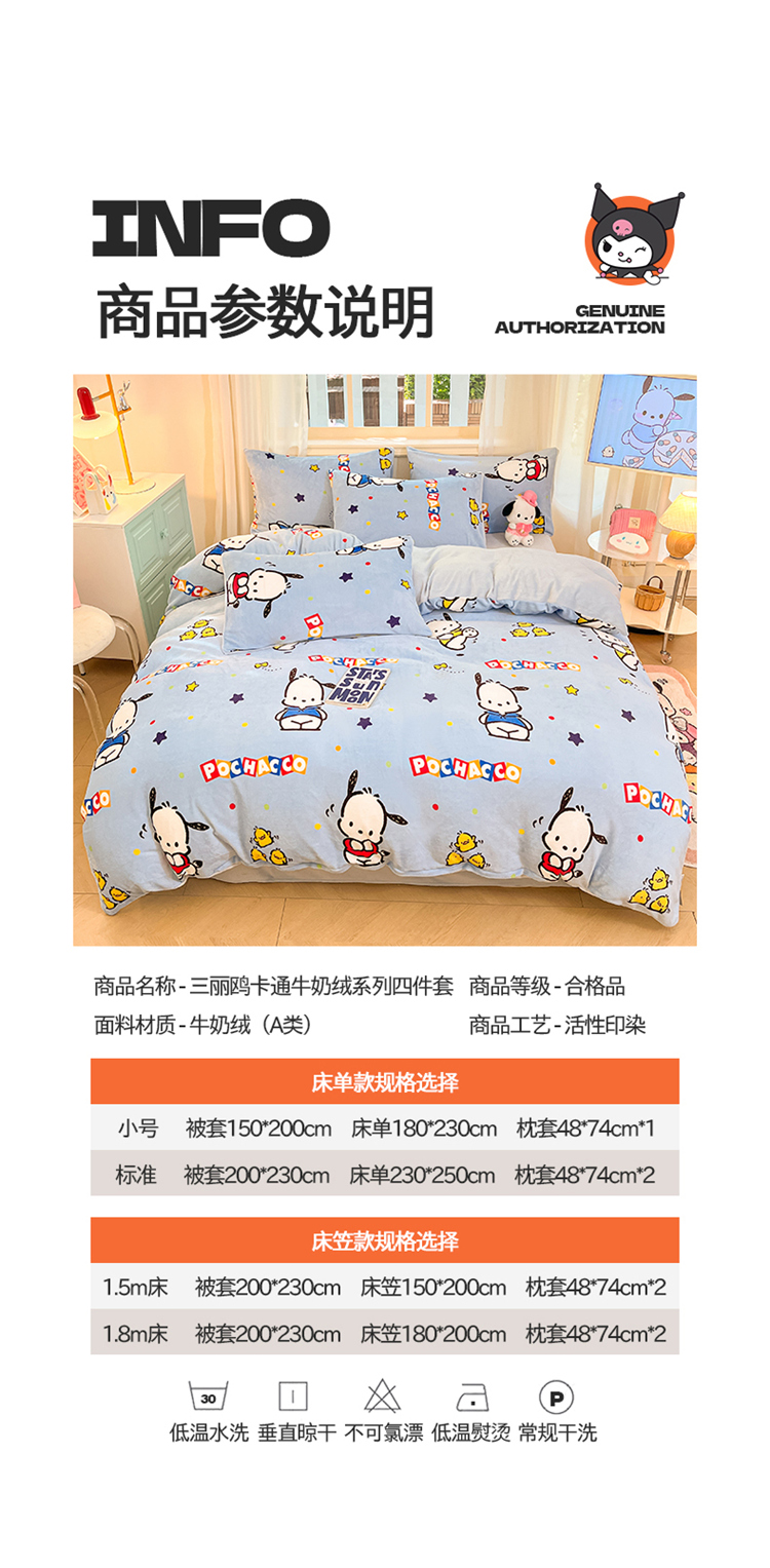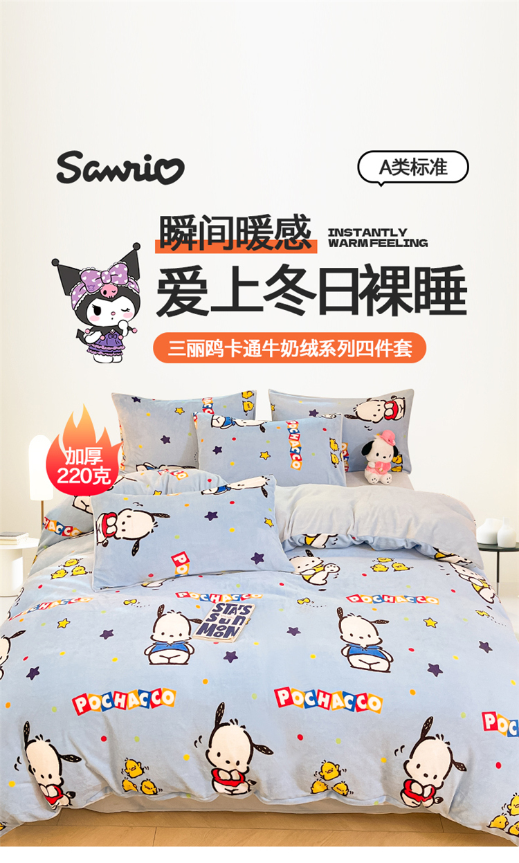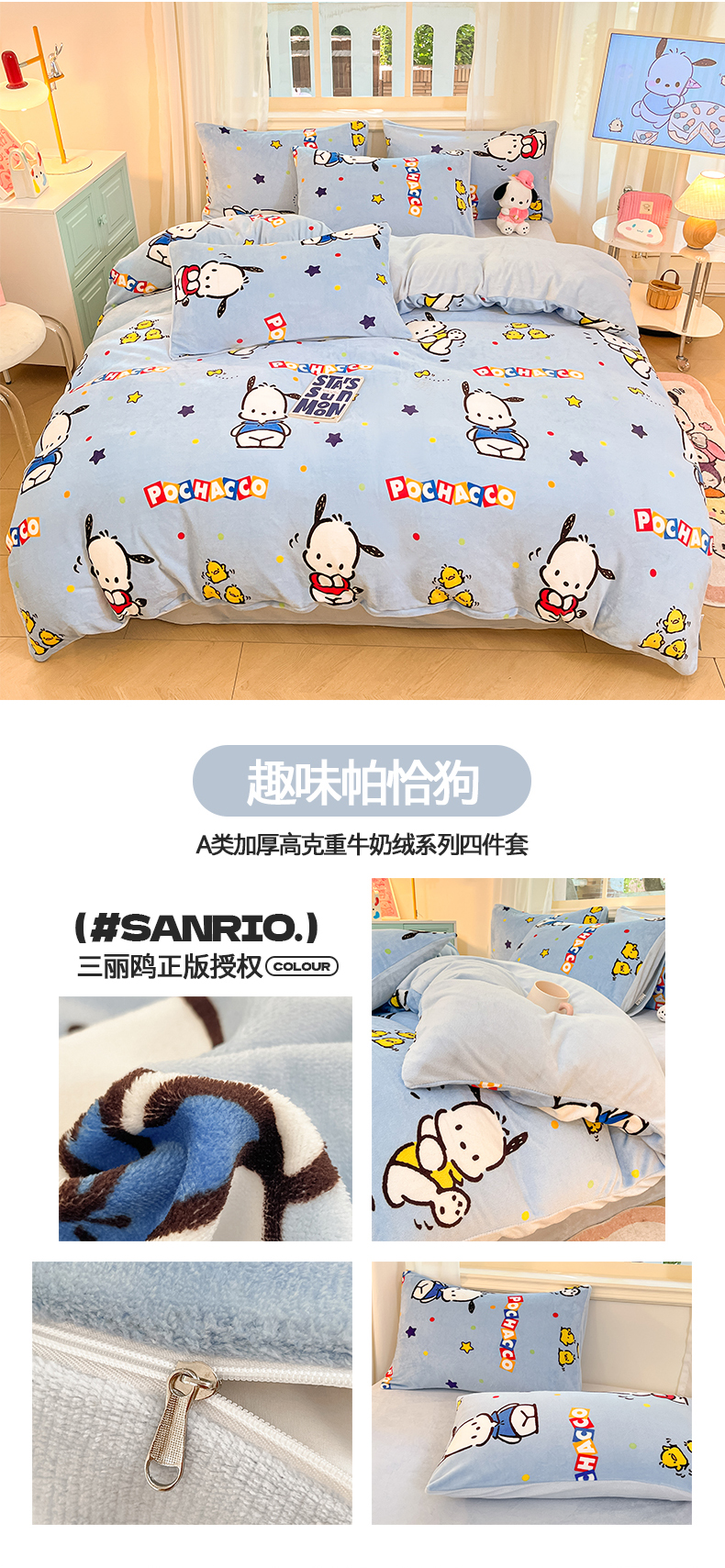 当前位置: 91家纺网 > 商品网购 > 床品套件 > 四件套 > 牛奶绒四件套 > 2024新品正版三丽鸥授权卡通加厚高克重牛奶绒系列四件套 绒三丽鸥-趣味帕恰狗