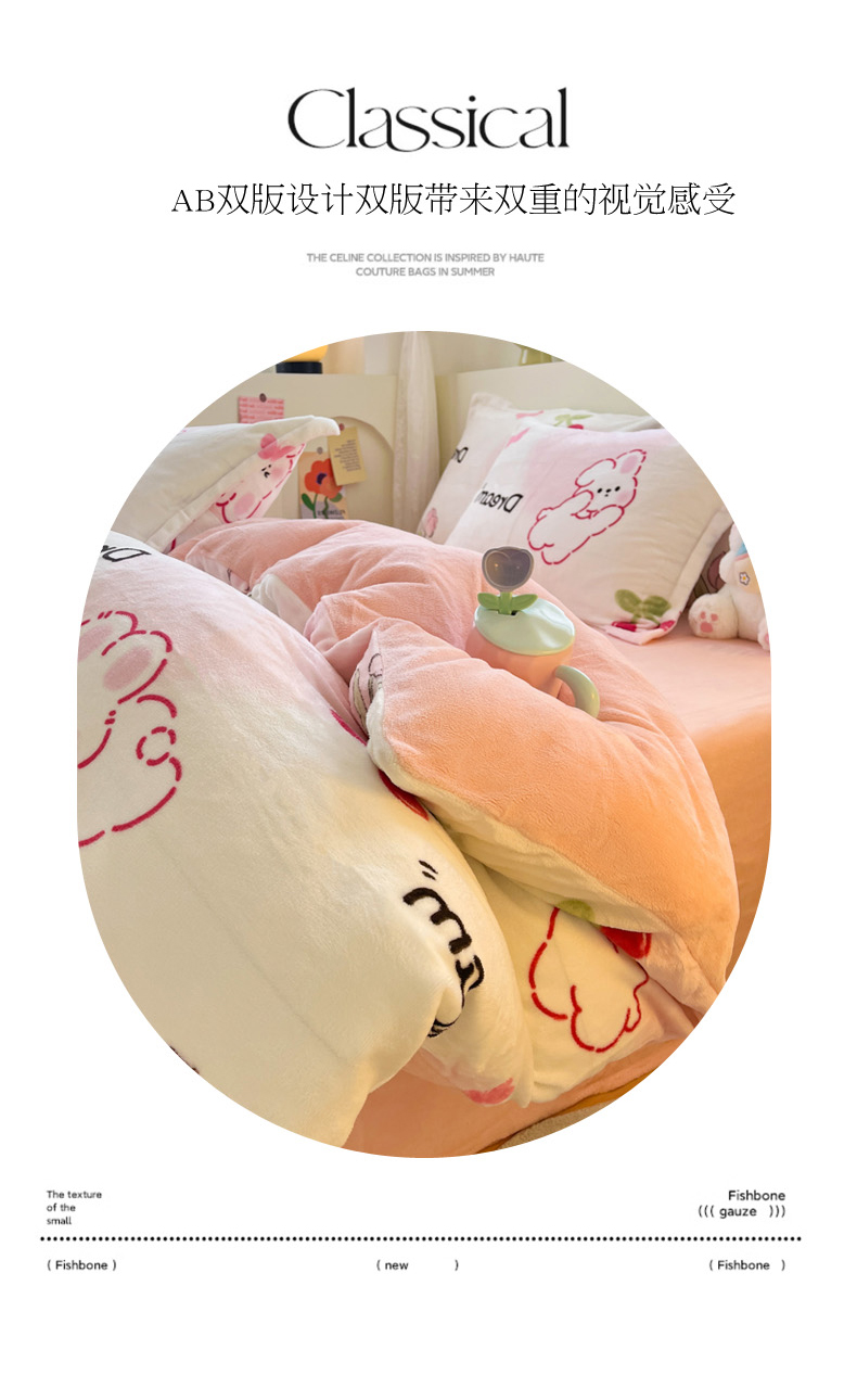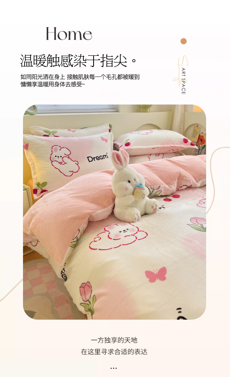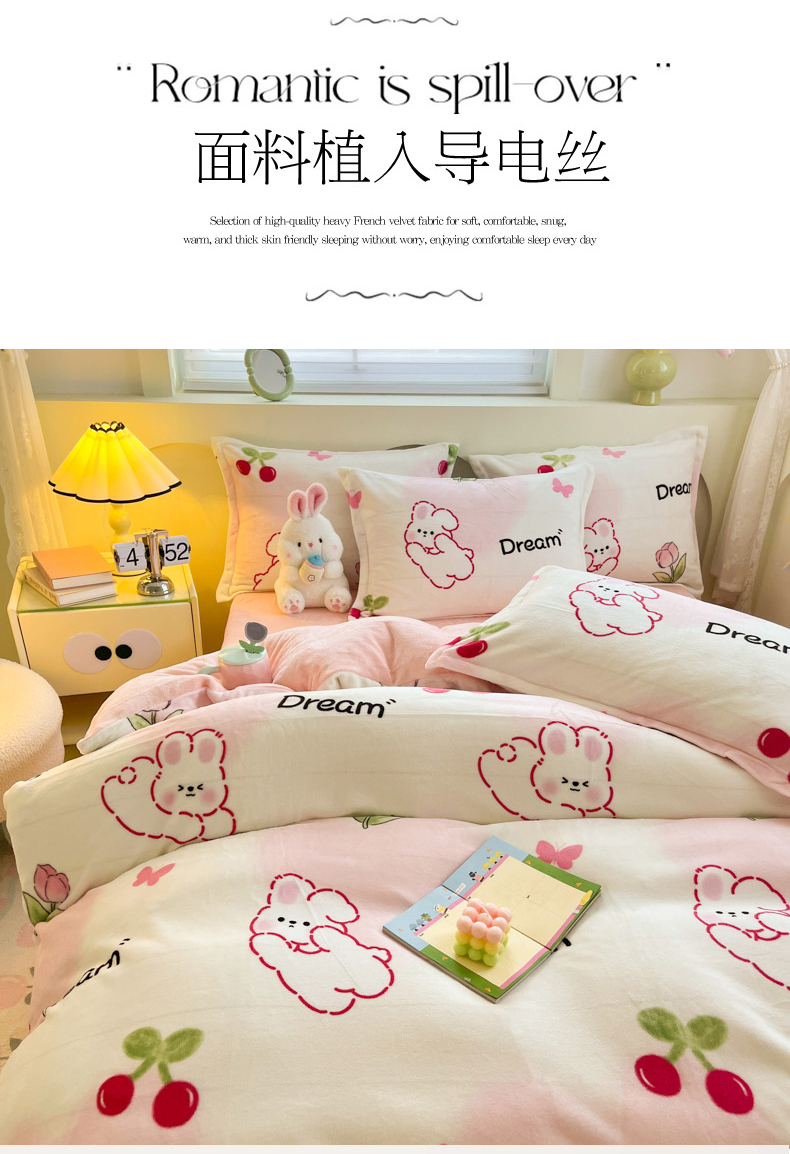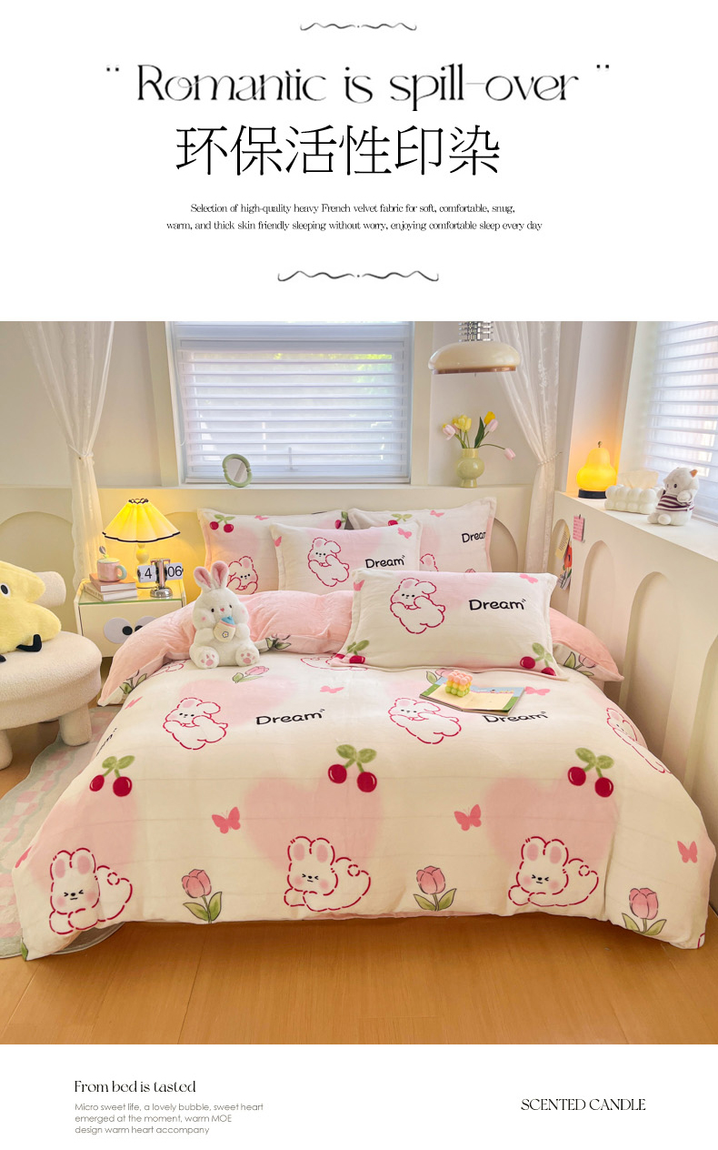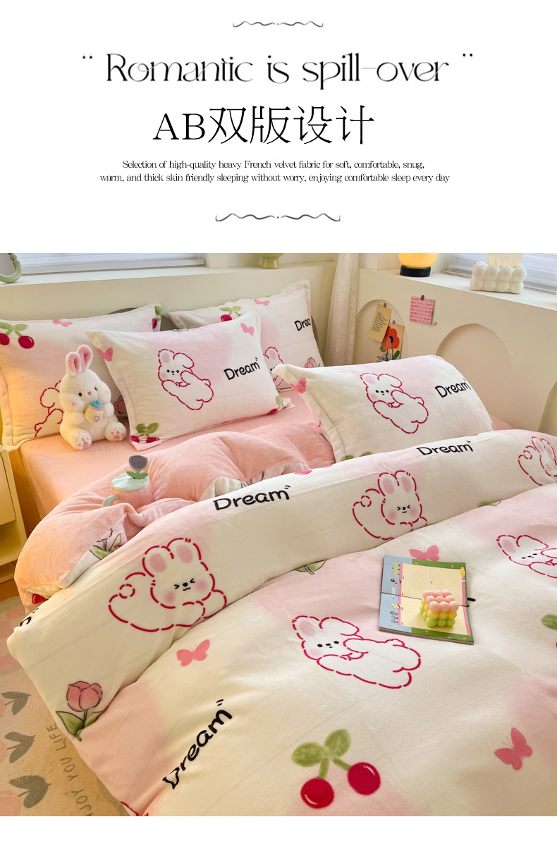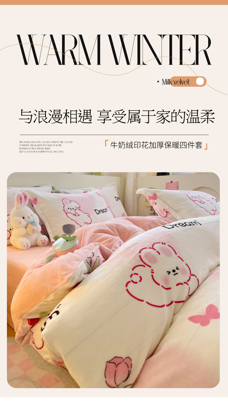 当前位置: 91家纺网 > 商品网购 > 床品套件 > 四件套 > 牛奶绒四件套 > 2024新款小清新牛奶绒高克重加厚保暖四件套 爱心兔