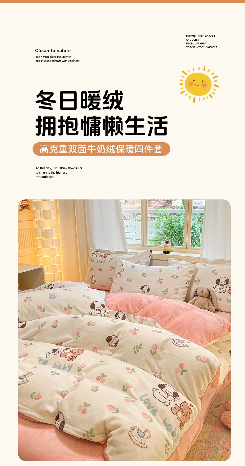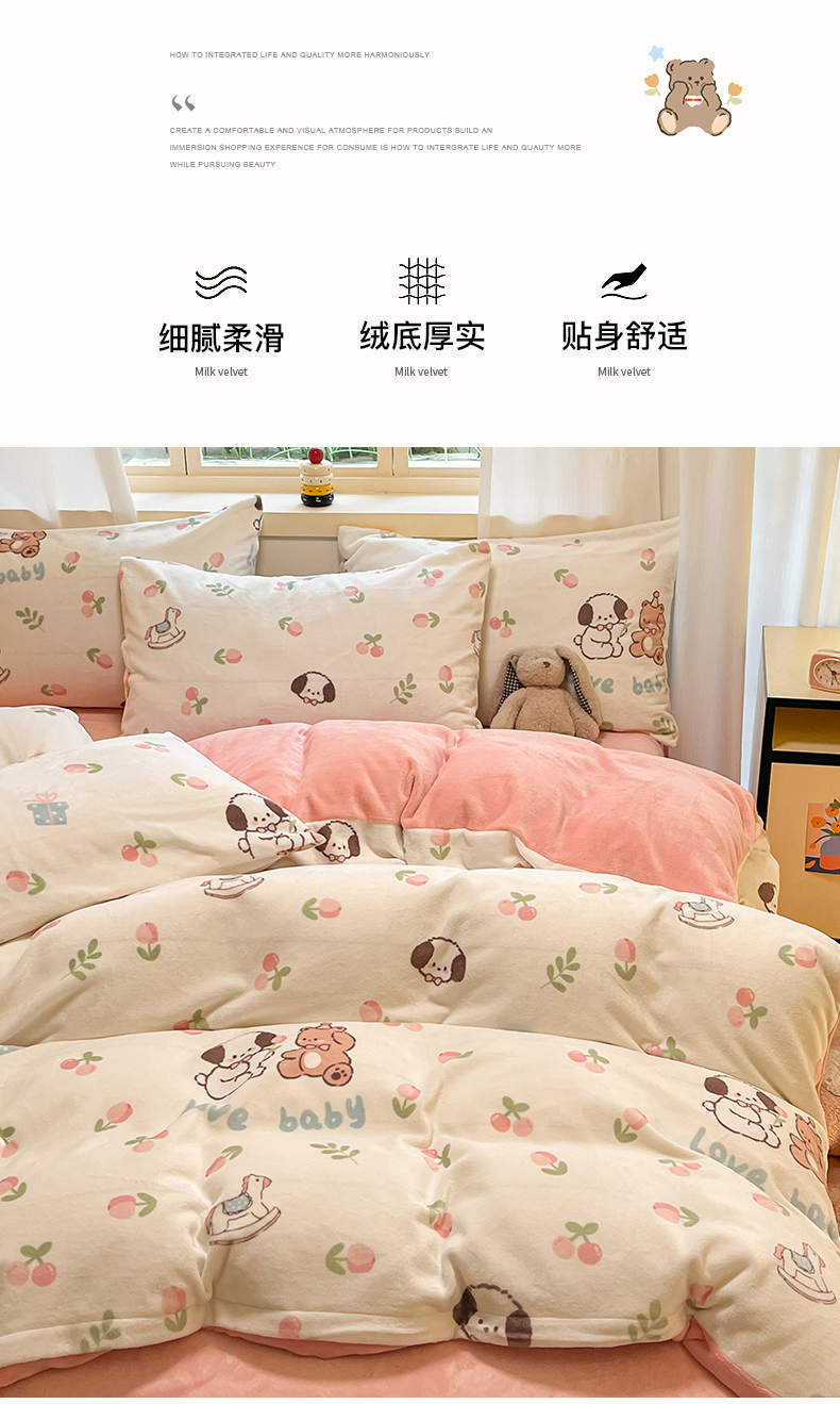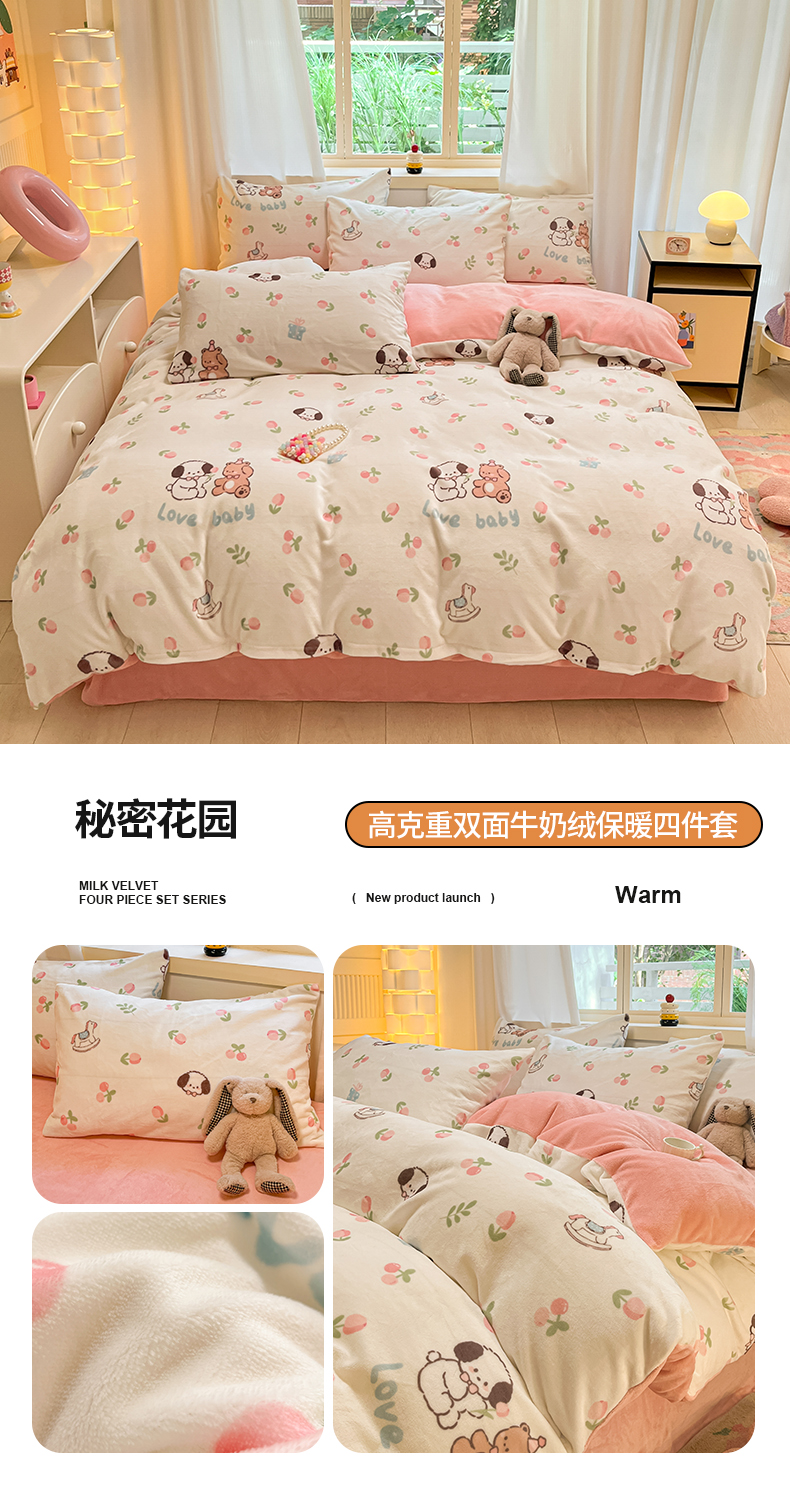 (总)铭宣 2025新款高克重牛奶绒印花保暖四件套床单床笠单被套款,爱丽丝花园,爱心兔-粉,爱心熊,豹纹猫咪,草莓熊,春日萌犬,高地犬-蓝,欢乐颂,黄油小熊,腊肠狗,蓝底小白狗,蓝调熊猫,萌仔熊猫,秘密花园,奶油派对,企鹅乐园,生日派对,甜心宝贝,甜樱萌宠,童话小兔,一帘幽梦,郁金香小兔,字母狗