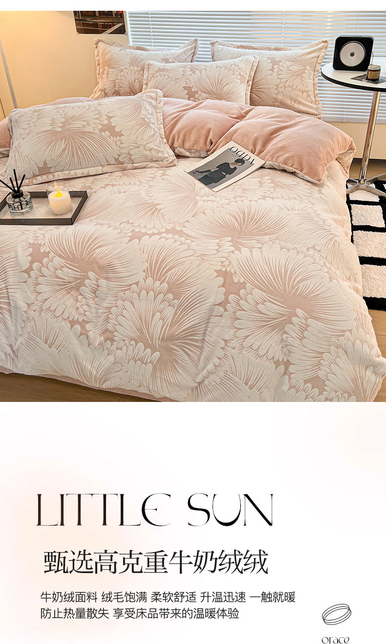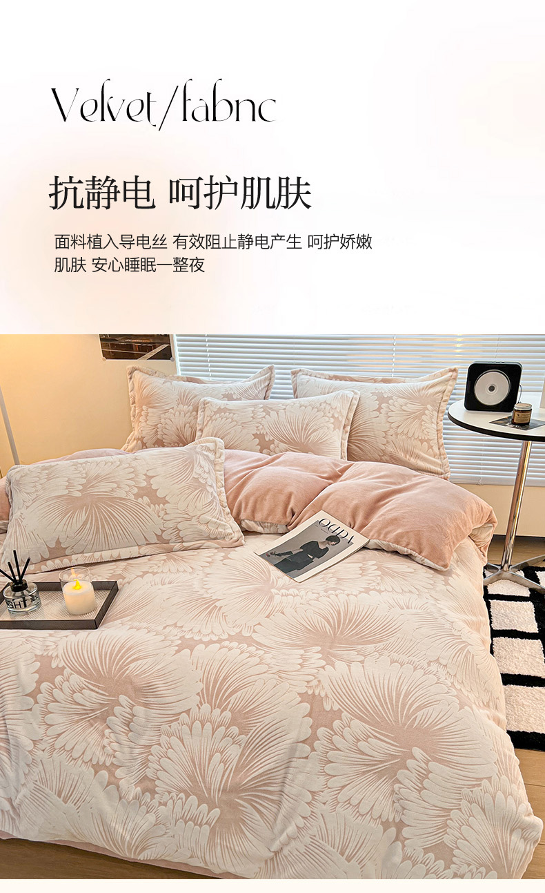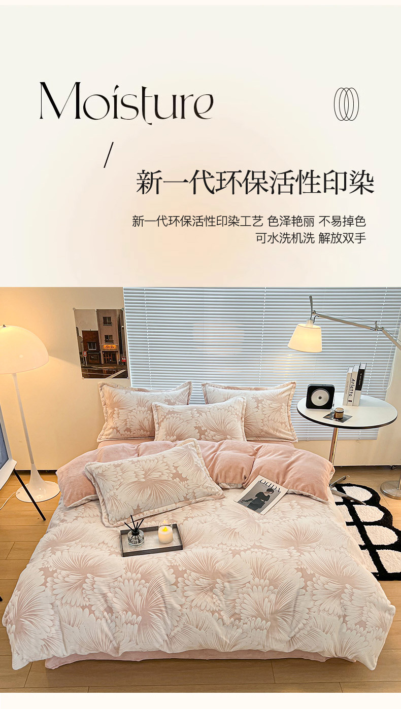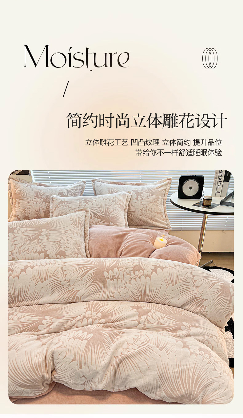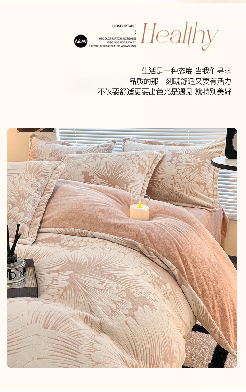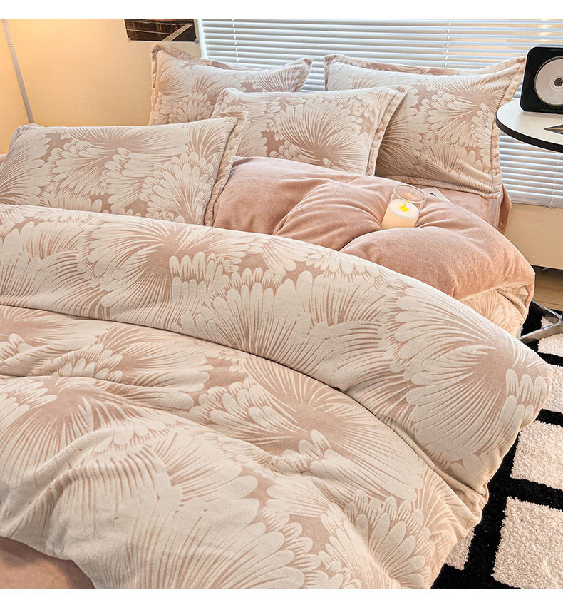 当前位置: 91家纺网 > 商品网购 > 床品套件 > 四件套 > 牛奶绒四件套 > 2024新款A类高克重立体浮雕牛奶绒加厚保暖系列-四件套 烟花浅粉