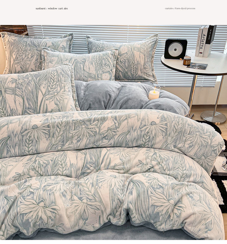 (总)倾慕 2025新款兔绒立体雕花加厚保暖系列四件套,爱娜玉,春絮蓝,春絮绿,伊宁玉,伊宁紫,优朵粉,珍妮粉,珍妮湖蓝