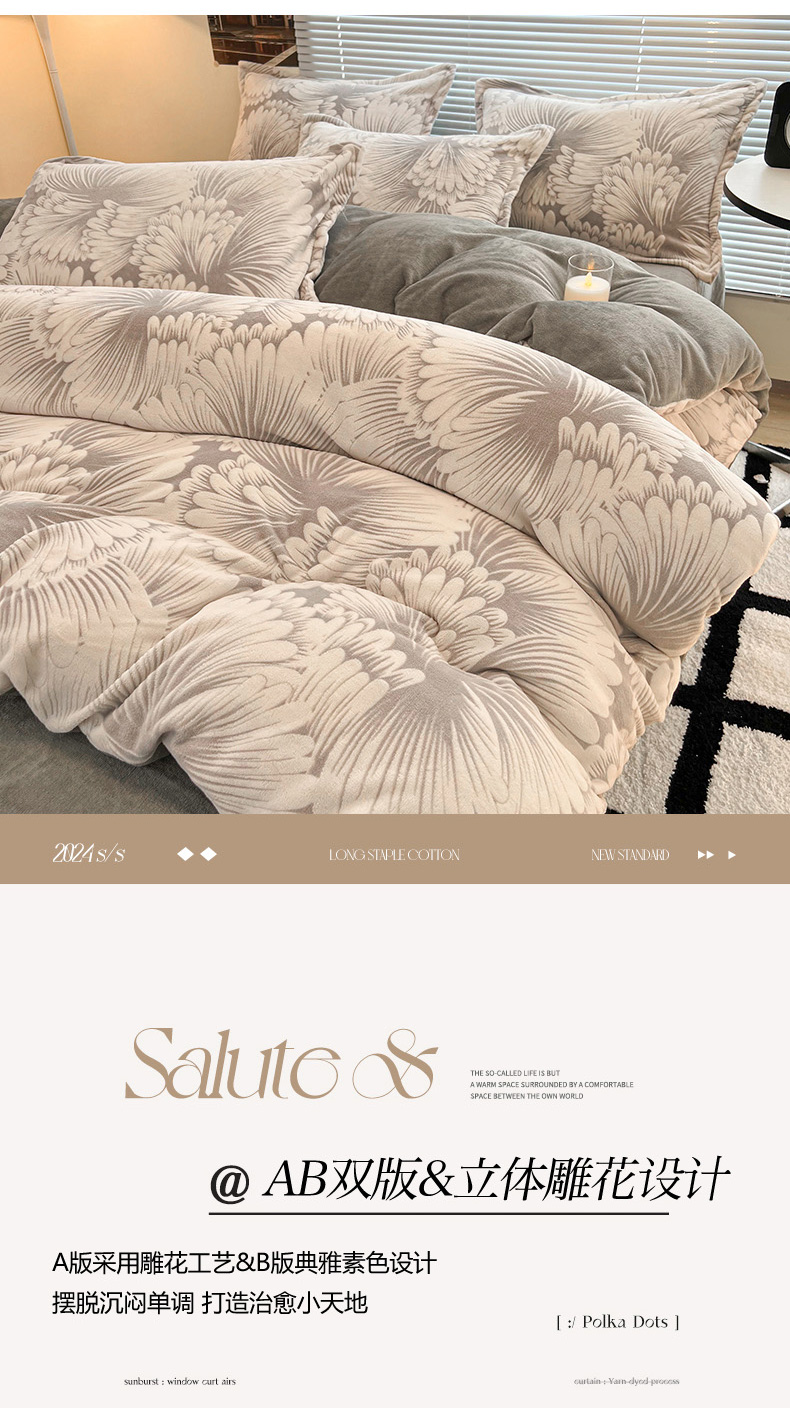 (总)倾慕 2025新款兔绒立体雕花加厚保暖系列四件套,爱娜玉,春絮蓝,春絮绿,伊宁玉,伊宁紫,优朵粉,珍妮粉,珍妮湖蓝