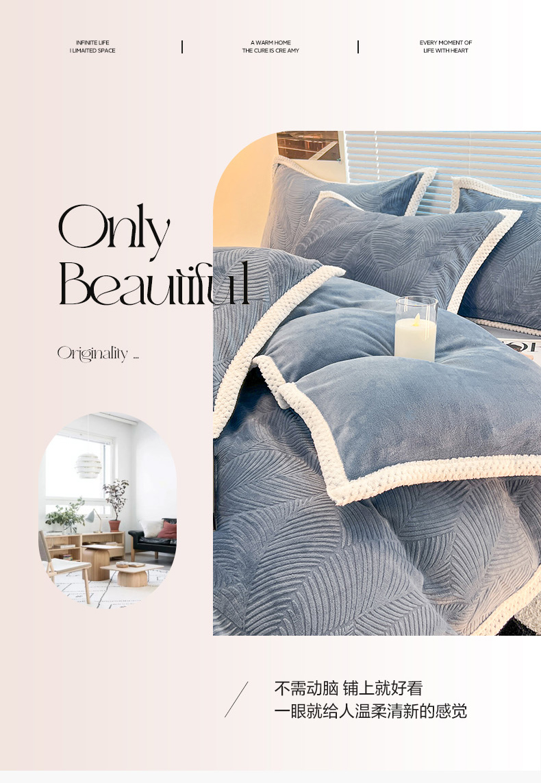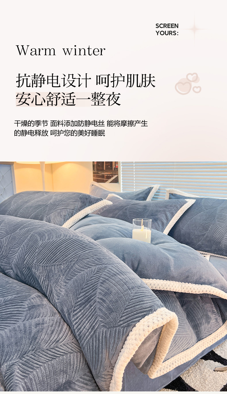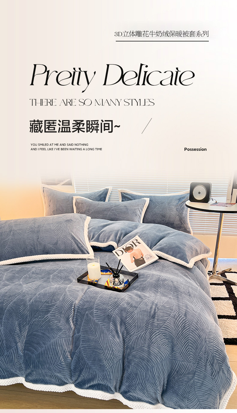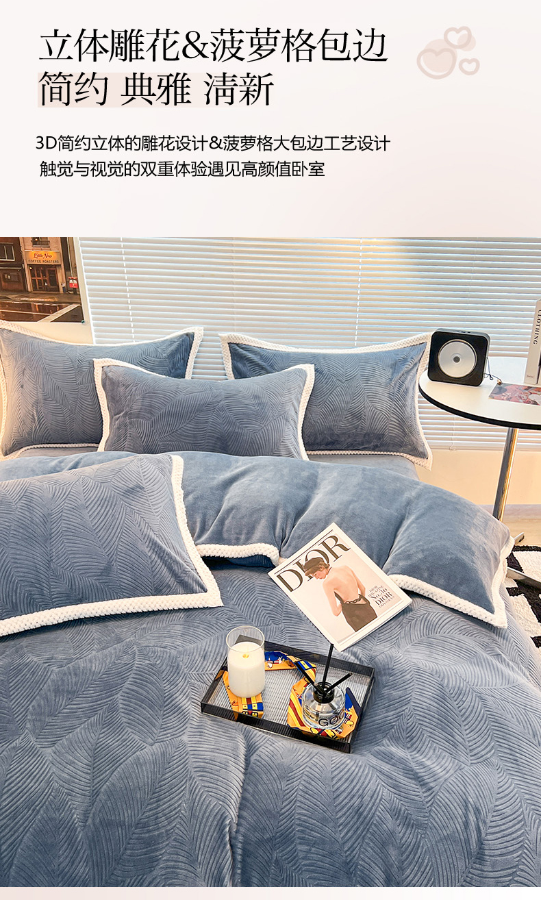 (总)2024新款A类高克重3D立体雕花牛奶绒保暖系列套件单品-被套