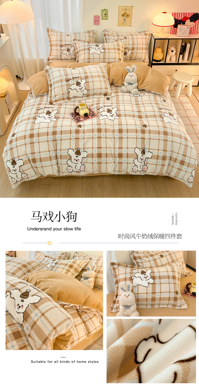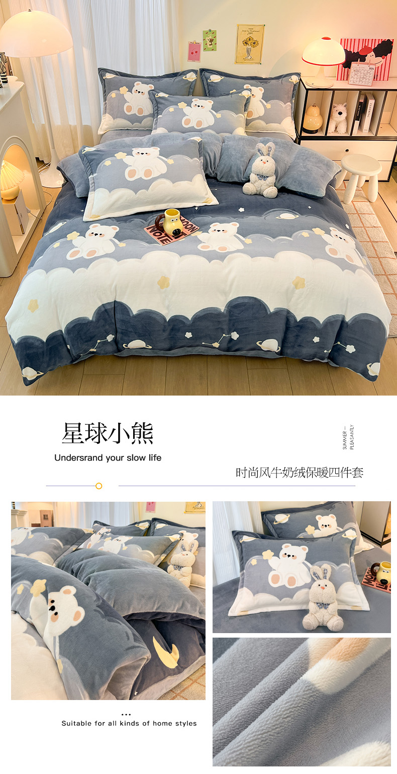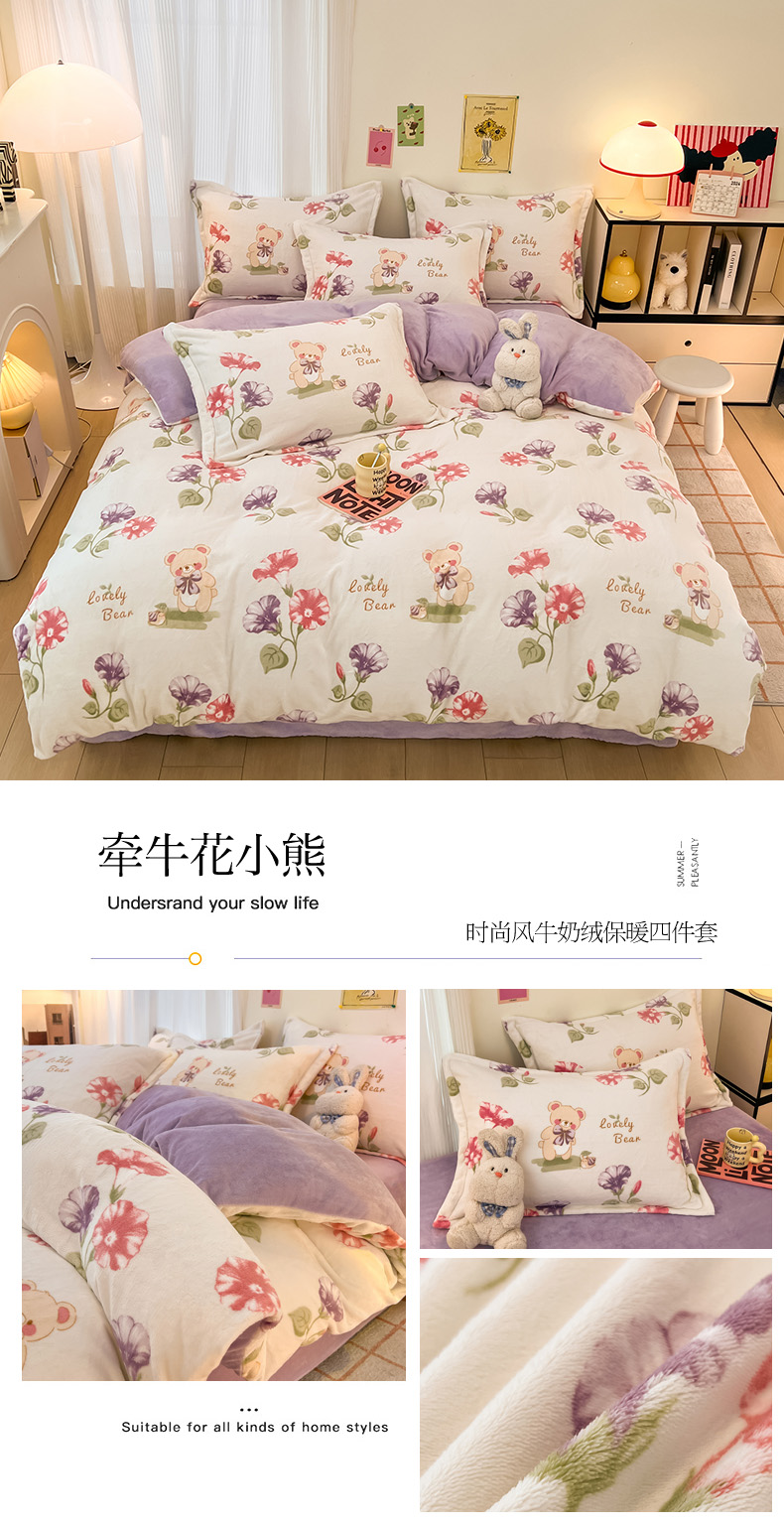 当前位置: 91家纺网 > 商品网购 > 床品套件 > 四件套 > 牛奶绒四件套 > 2024新款A类高克重时尚风牛奶绒加厚保暖系列套件单品-四件套 爱心兔