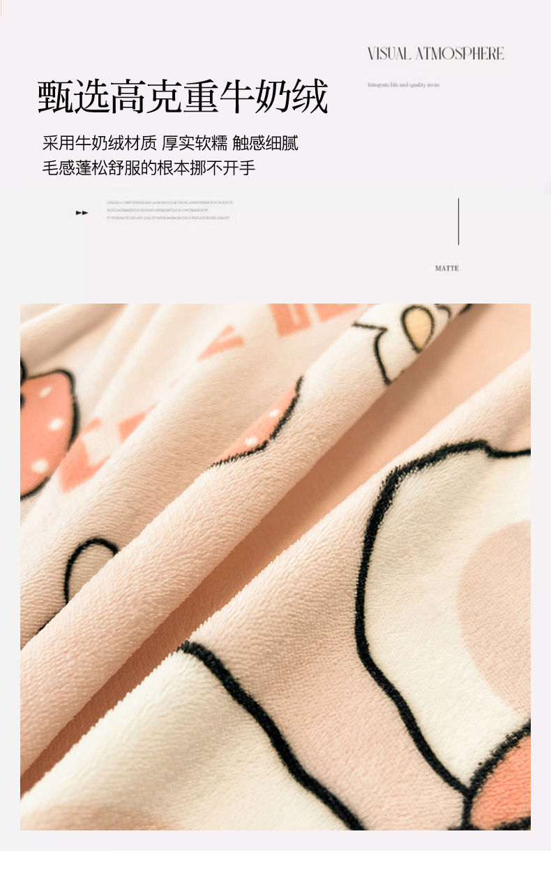 2024新款A类高克重时尚风牛奶绒加厚保暖系列套件单品-被套 小兔草莓