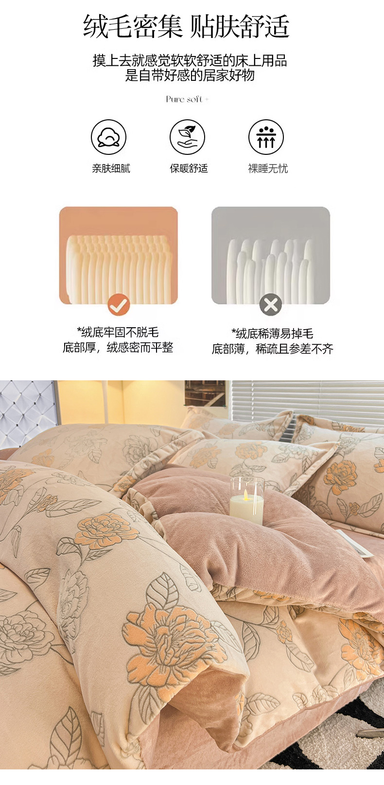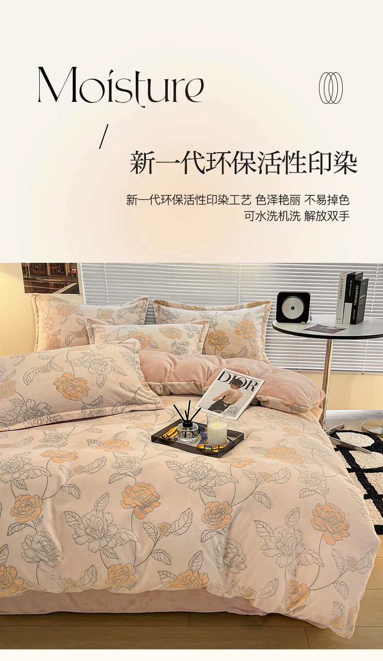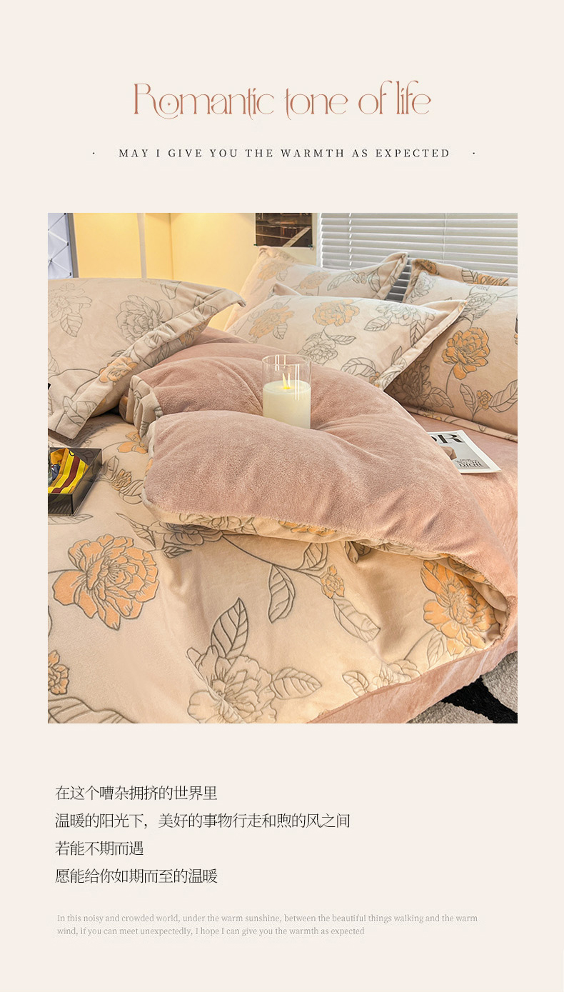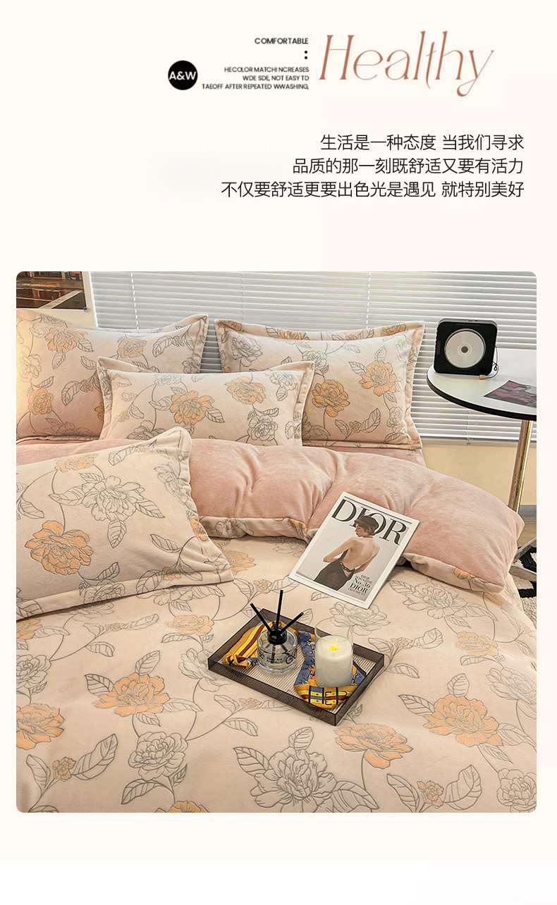 当前位置: 91家纺网 > 商品网购 > 床品套件 > 四件套 > 牛奶绒四件套 > 2024新款A类高克重立体浮雕牛奶绒加厚保暖简约风系列四件套 华恋花粉