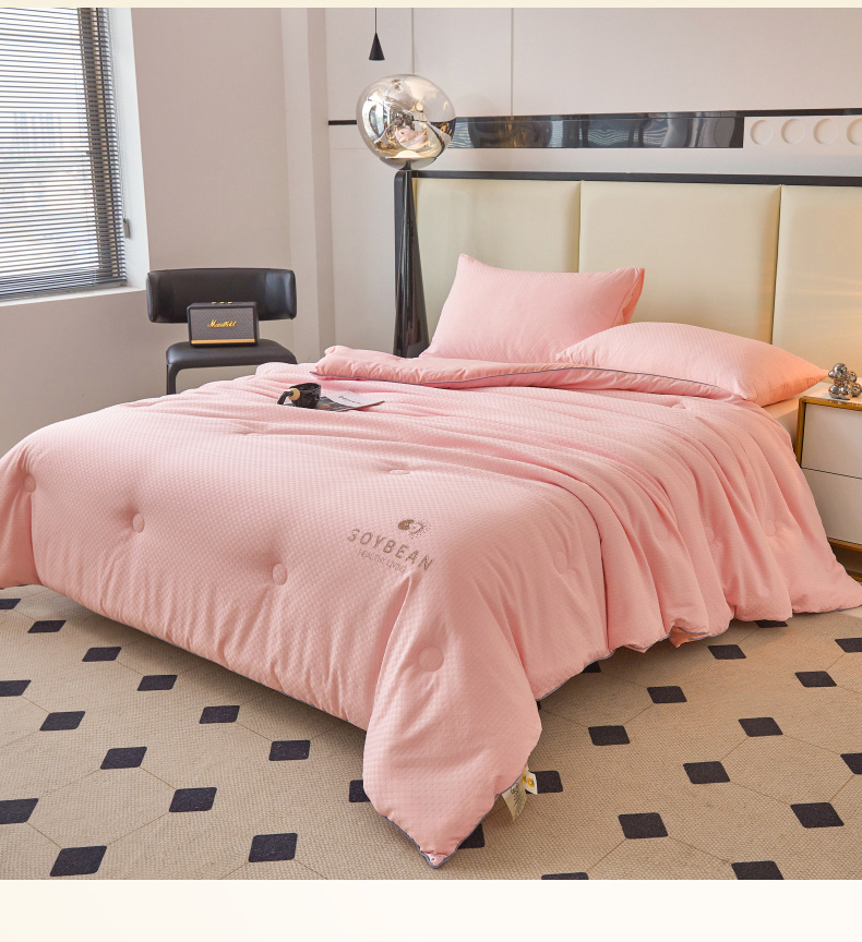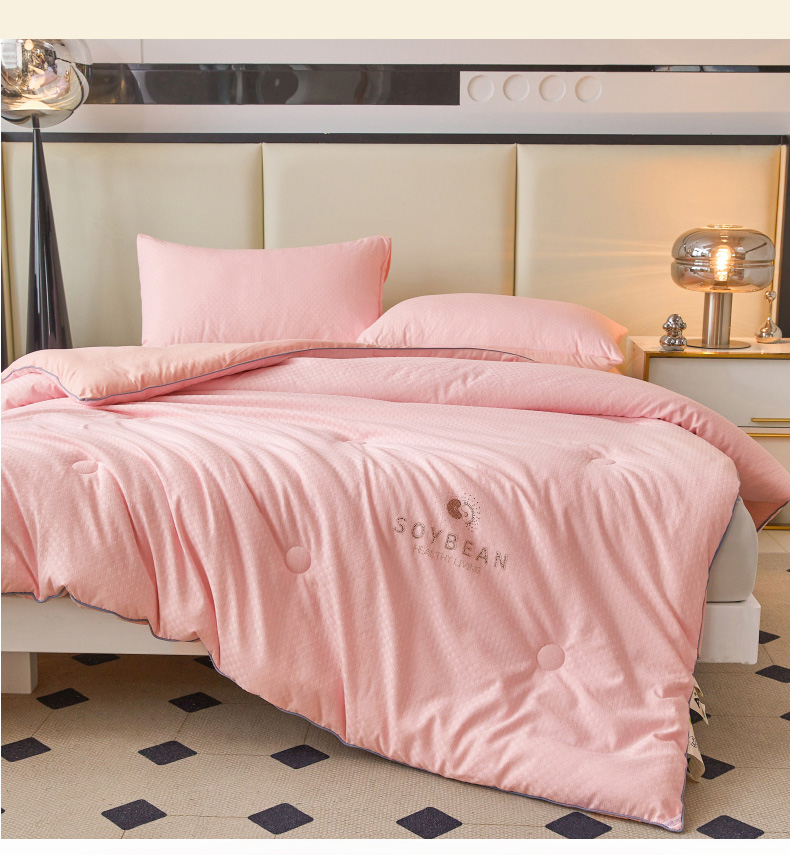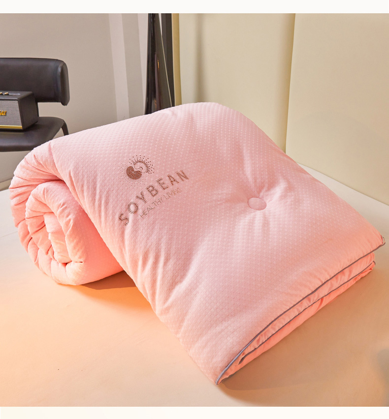 寐居家纺 2024新款A类提花烫钻大豆被芯被子被芯 提花大豆-粉玉