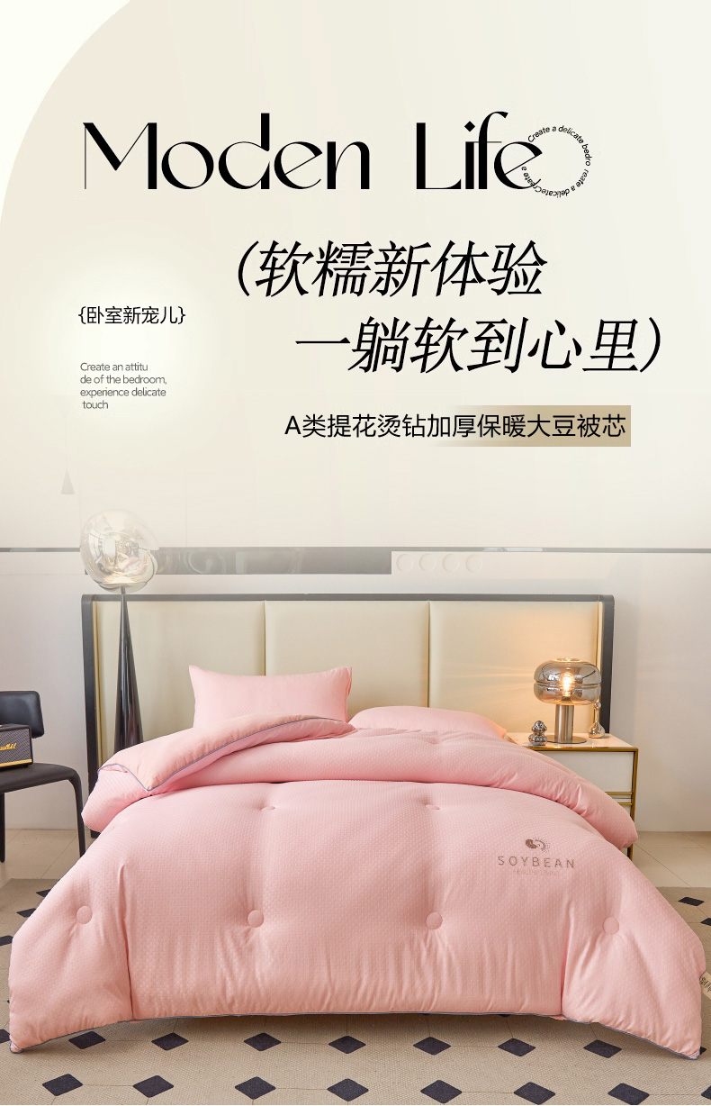 商品名称:寐居家纺 2024新款A类提花烫钻大豆被芯被子被芯 提花大豆-粉玉