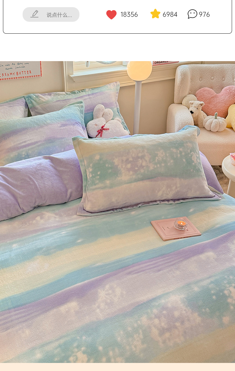当前位置: 91家纺网 > 商品网购 > 床品套件 > 四件套 > 牛奶绒四件套 > 名兮家居 2024新款卡通时尚风高克重牛奶绒四件套 彩色的梦