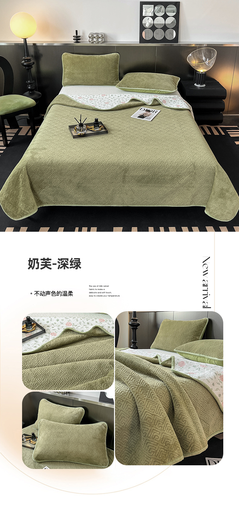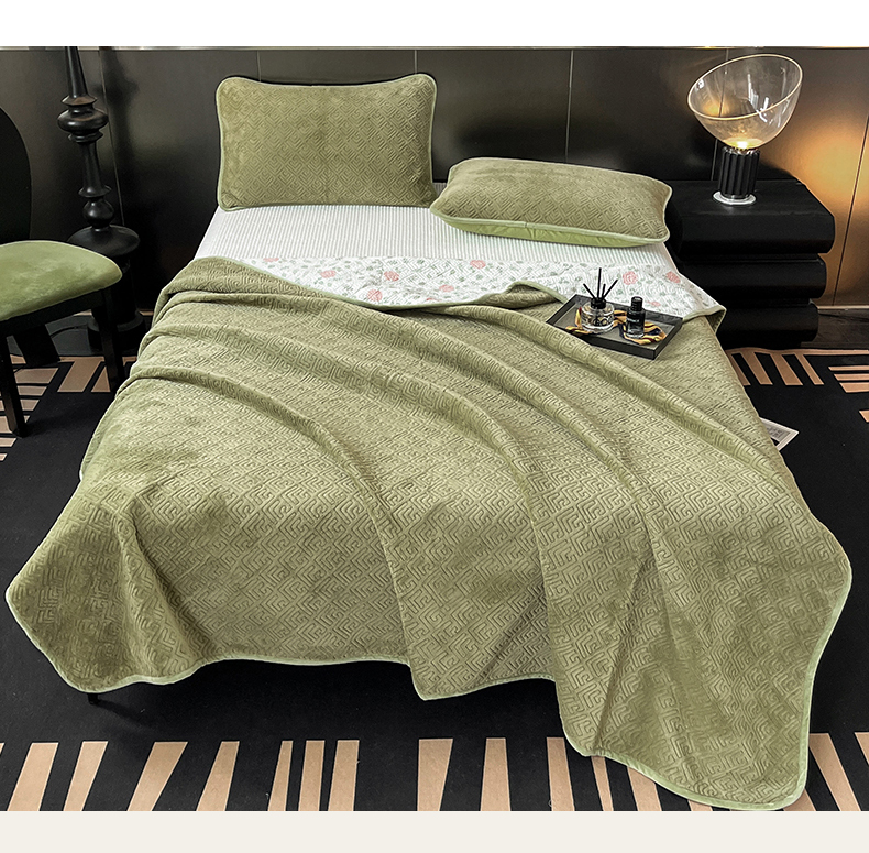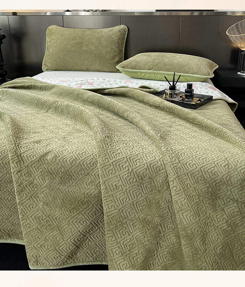 商品名称:茉夕家纺 2024新款奶芙纯棉牛奶绒水洗床盖 奶芙-深绿