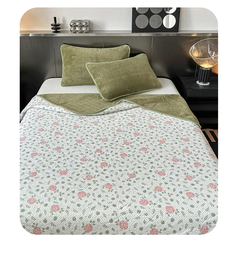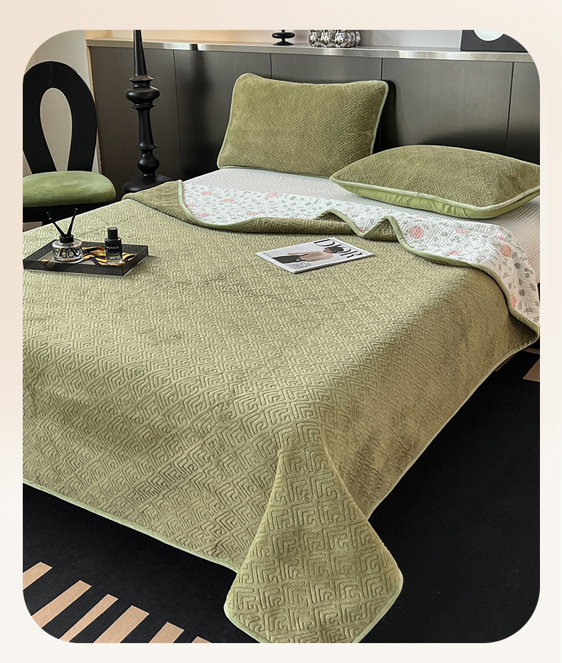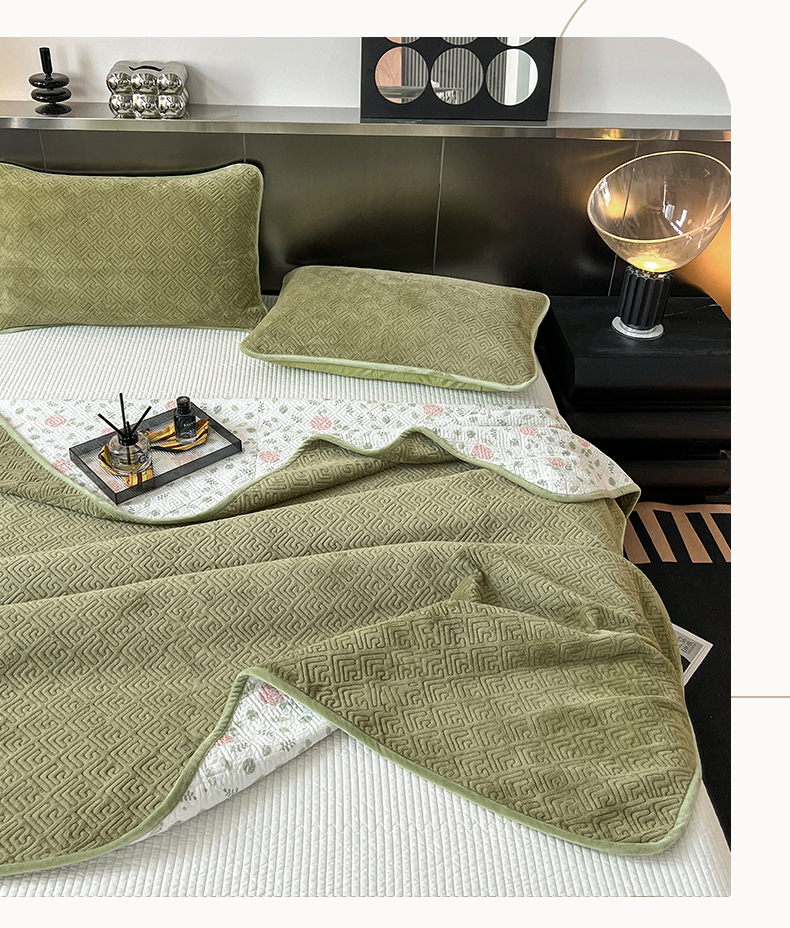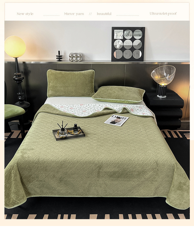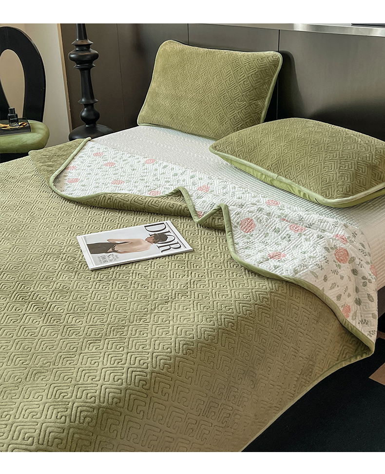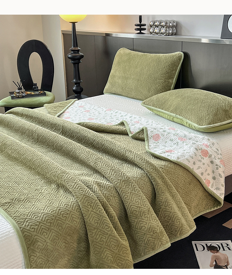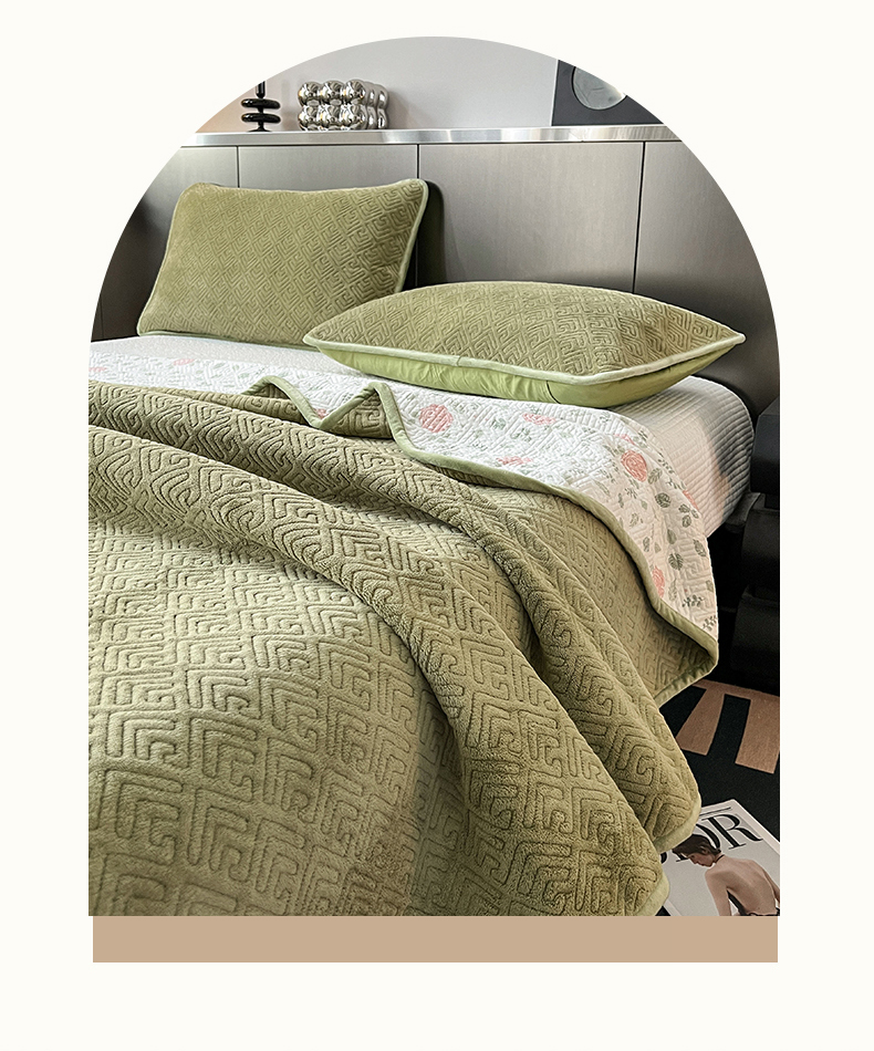 茉夕家纺 2024新款奶芙纯棉牛奶绒水洗床盖 奶芙-深绿