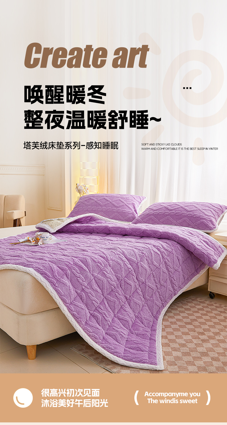 当前位置: 91家纺网 > 商品网购 > 床垫/床褥 > 普通床垫 > 卡伦家纺 2025新款塔芙绒保暖床垫成人双人单人床垫 丁香紫