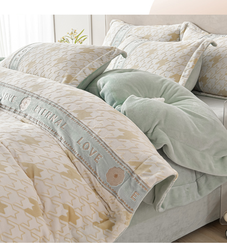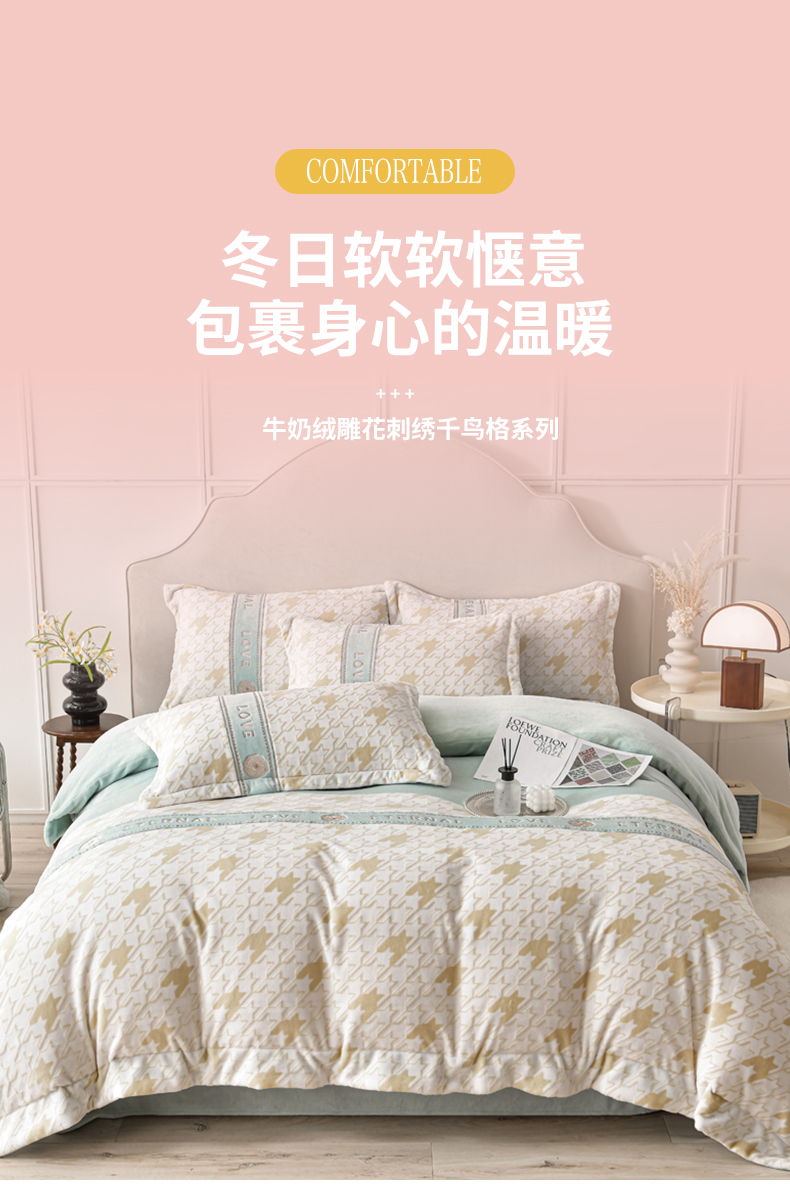 (总)妮恒美 2025新款牛奶绒四件套雕花刺绣千鸟格法莱绒四件套11,千鸟格-露娜玉,千鸟格-玫瑰紫,千鸟格-魅力红,千鸟格-奶油橘,千鸟格-浅灰绿,千鸟格-石英灰,千鸟格-梧桐杏,千鸟格-元气绿