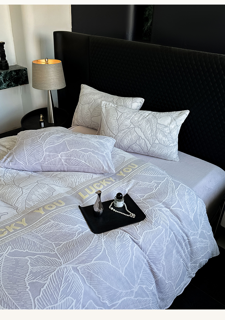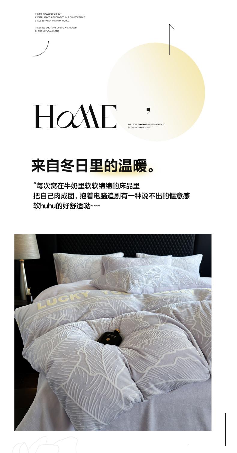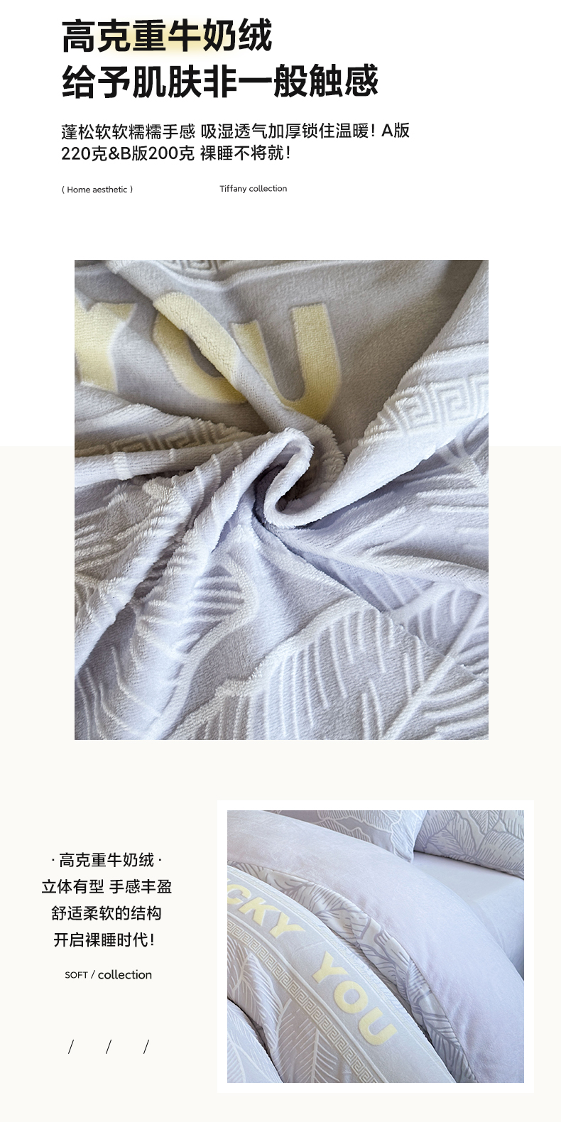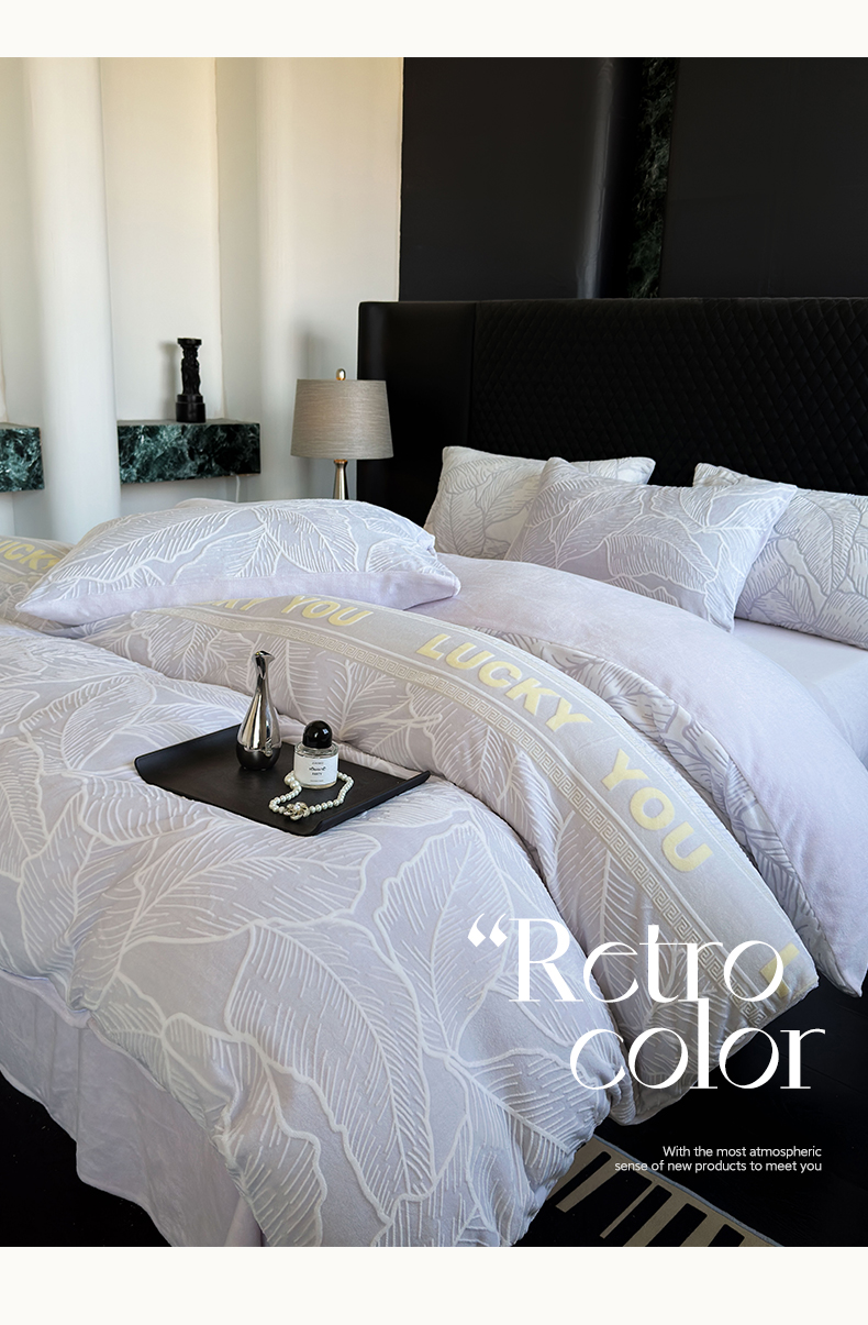 当前位置: 91家纺网 > 商品网购 > 床品套件 > 四件套 > 牛奶绒四件套 > 莱登卡奴 2024新款高克重牛奶绒雕花轻奢款四件套-维多利系列 叶魅奶昔紫