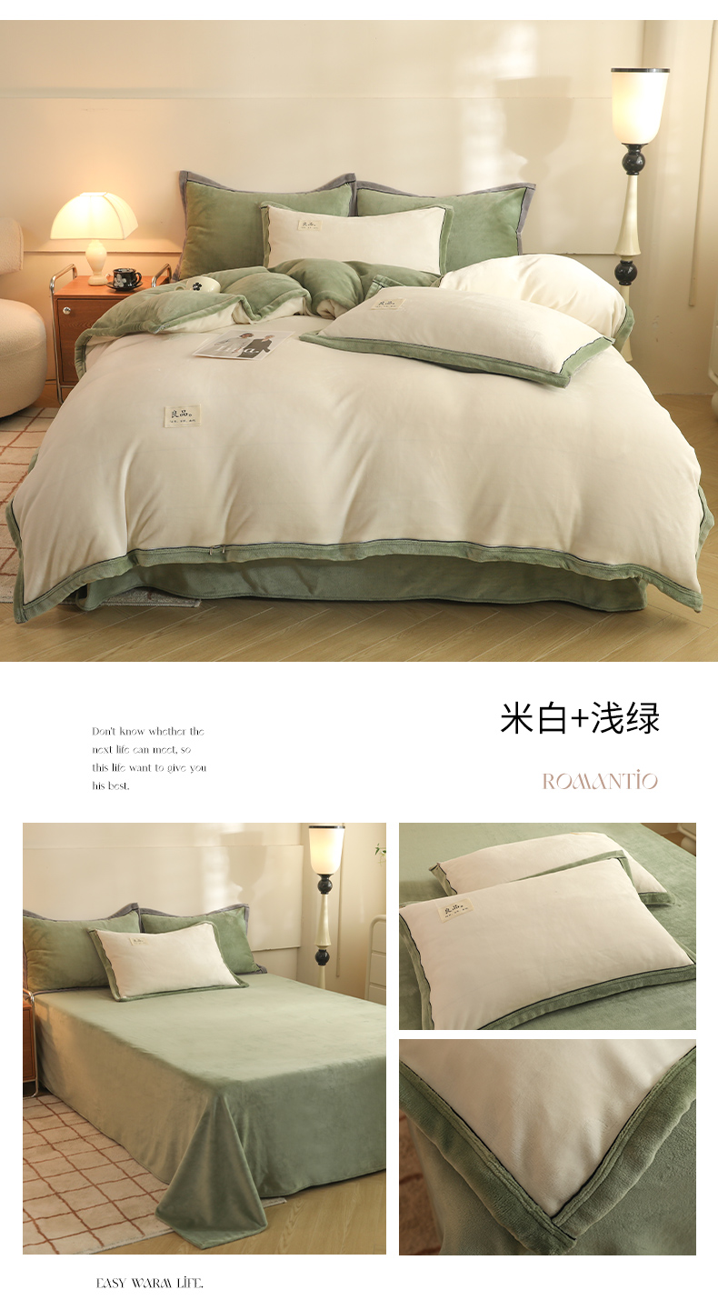 当前位置: 91家纺网 > 商品网购 > 床品套件 > 四件套 > 牛奶绒四件套 > 2025新款A类加厚牛奶绒大包边系列-四件套 米白+浅绿