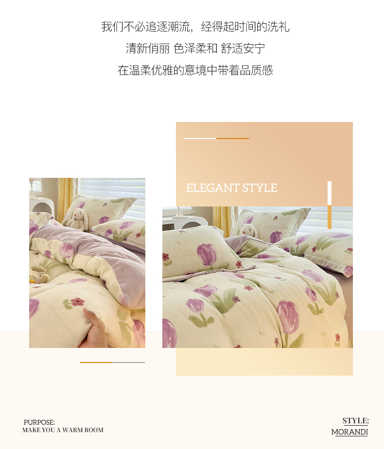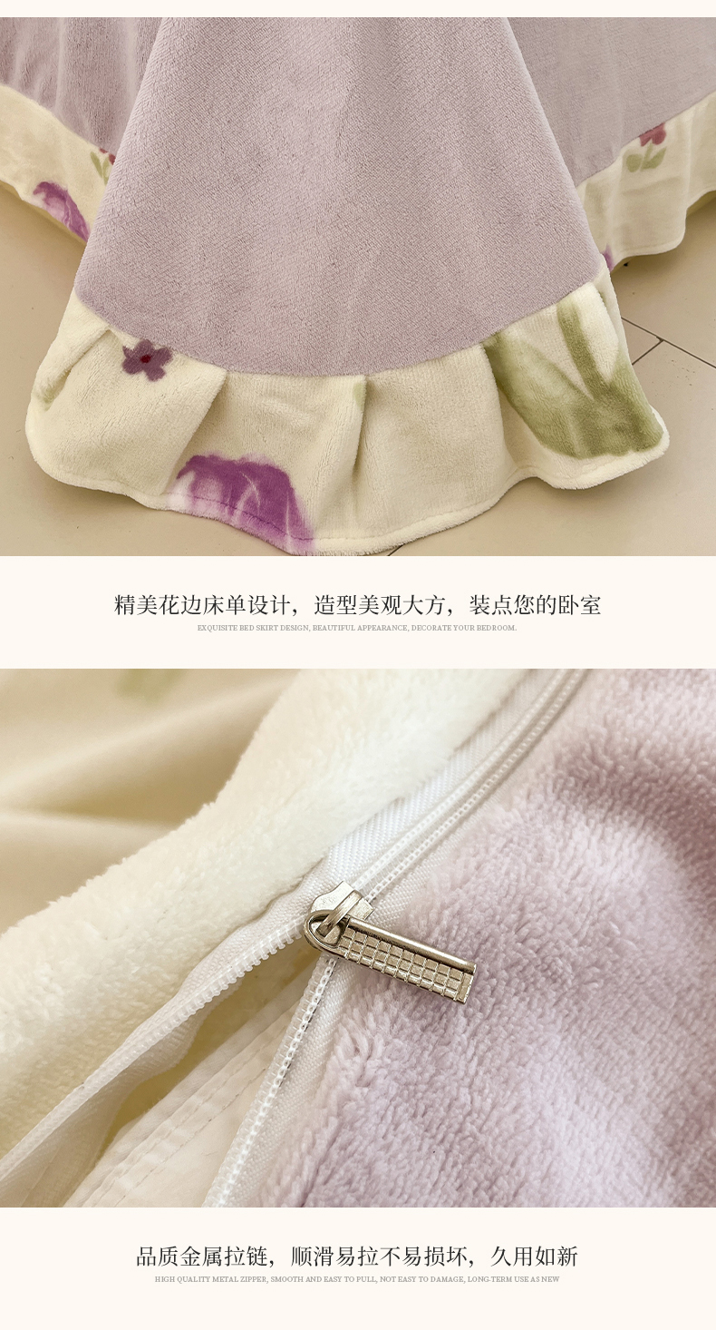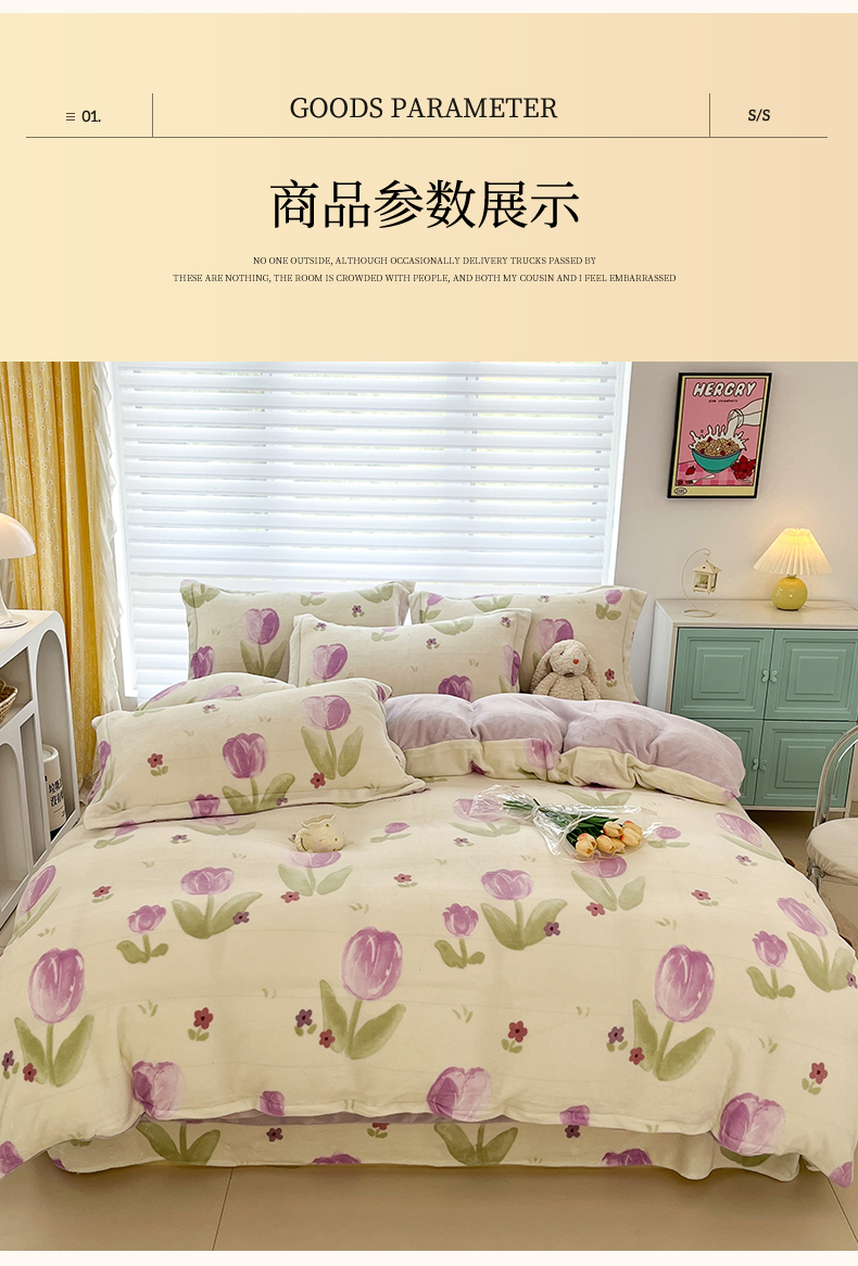 商品名称:简如 2025新款加厚220克牛奶绒印花四件套 乐乐花园-紫