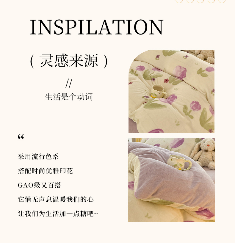 简如 2025新款加厚220克牛奶绒印花四件套 乐乐花园-紫