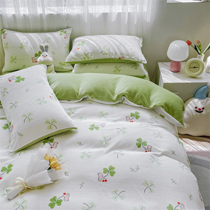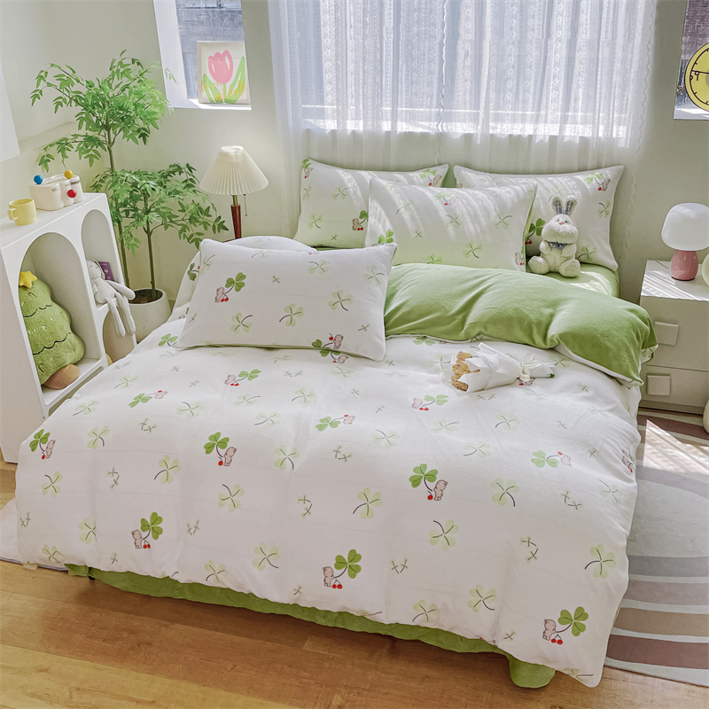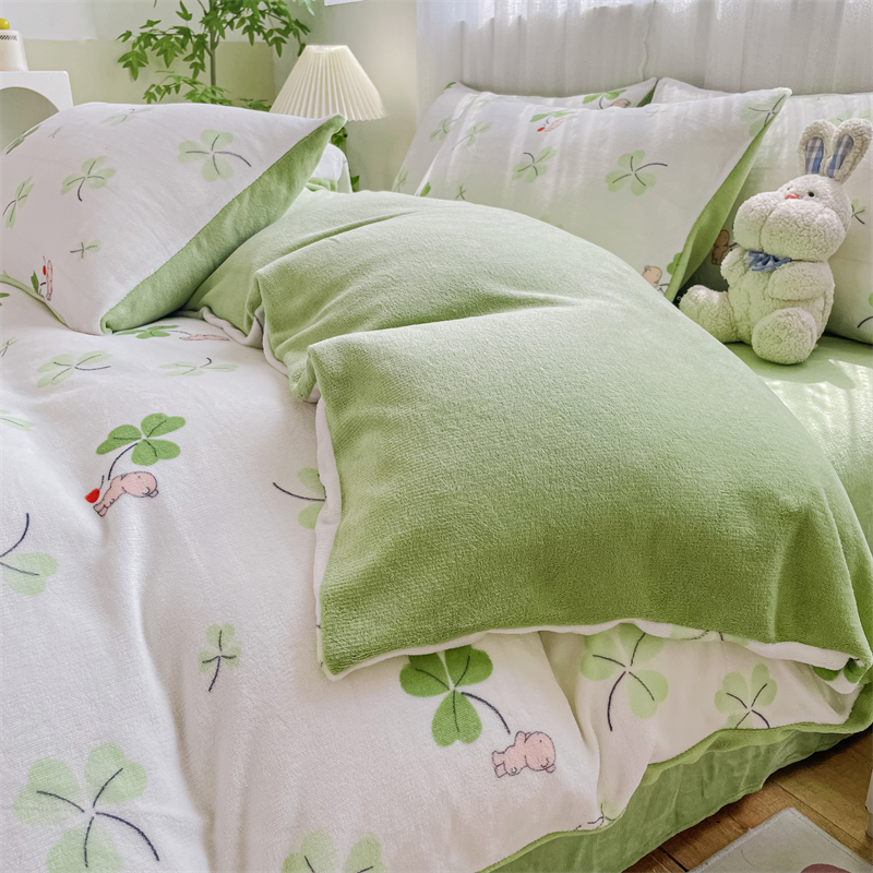 当前位置: 91家纺网 > 商品网购 > 床品套件 > 四件套 > 牛奶绒四件套 > 奥虎家纺2024新款加厚牛奶绒印花四件套三叶草