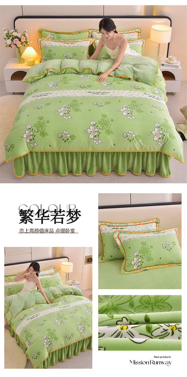富之航 2024新款8-9斤高克重印花牛奶绒四件套保暖绒套件直播爆款繁华若梦