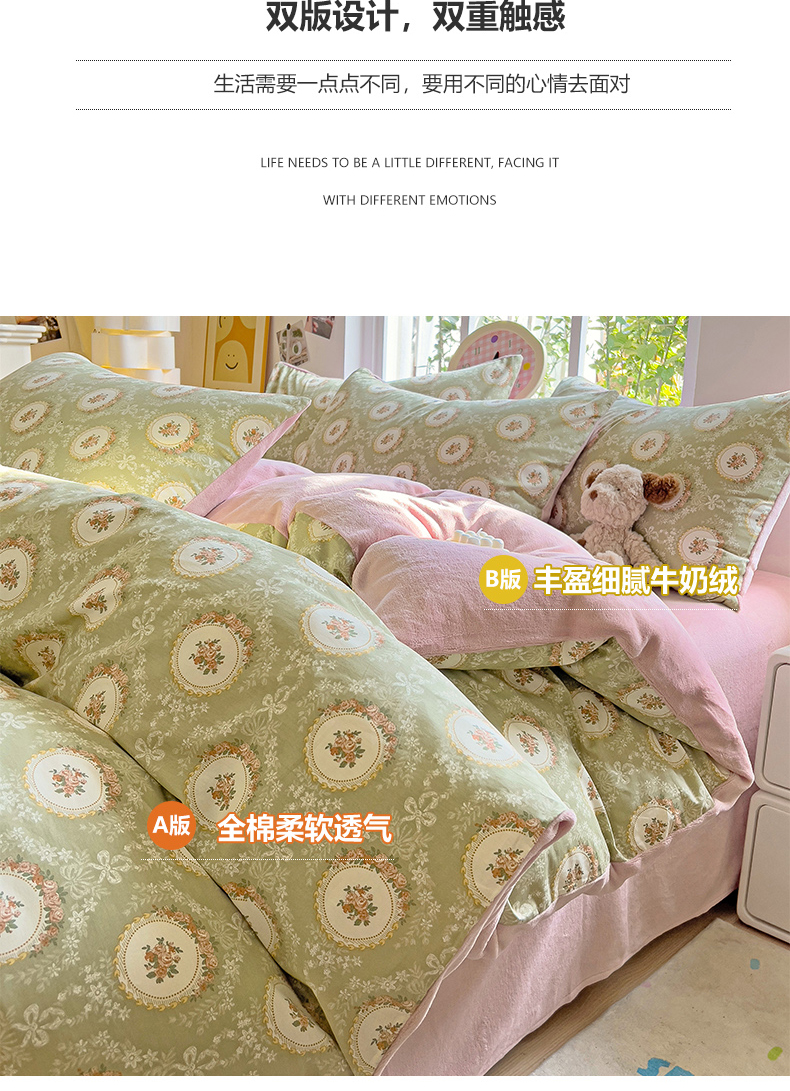 (总)捌月 2025新款棉加绒A版13372全棉B版高克重牛奶绒四件套直播新品,爱茜茜里,贝莉,春溪集,多姿多彩,朝花夕拾,茶艺师,粉诺,安冉,赫本,花花兔,花西子,花香暖语,菱格,梦华录,墨雨云间,沐辰花,浅汐,蔷薇,秋韵,苏黎世,薇薇安,汐月(棉绒),娴雅,线韵,小城故事,小时光,心语,寻觅,燕麦,樱桃花开,圆梦