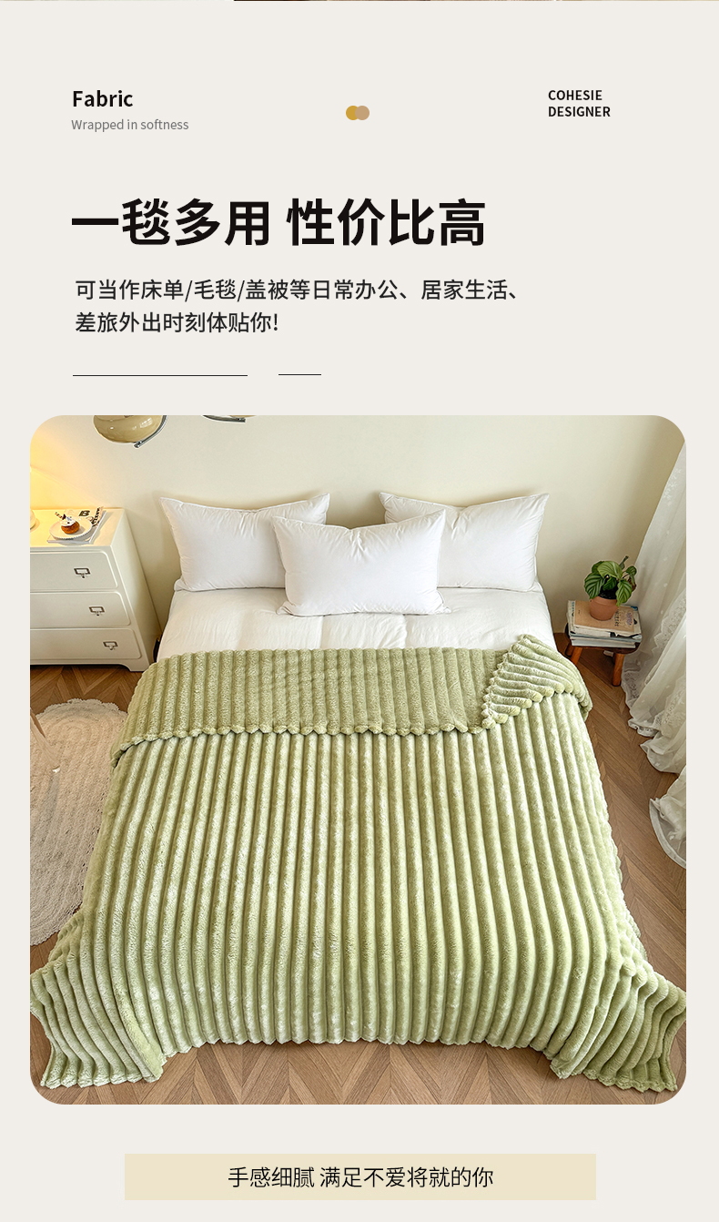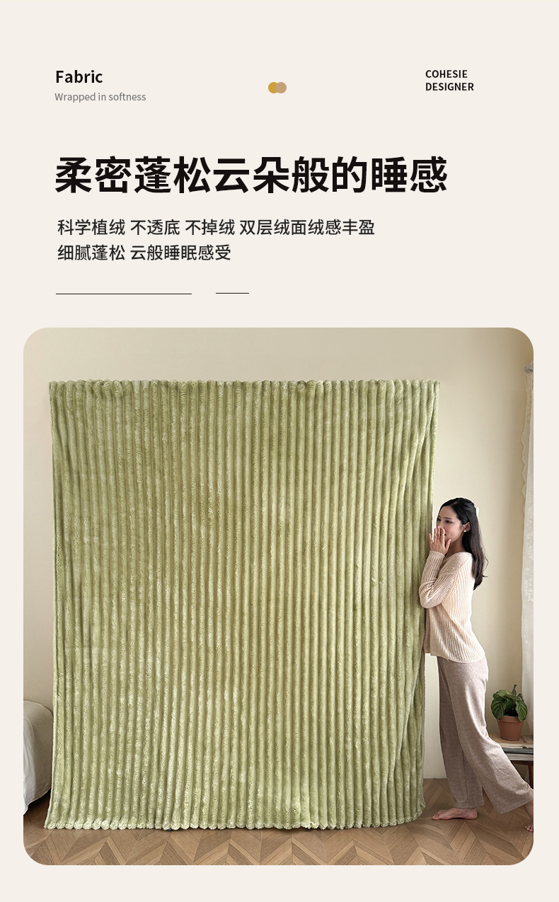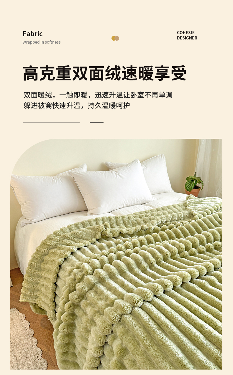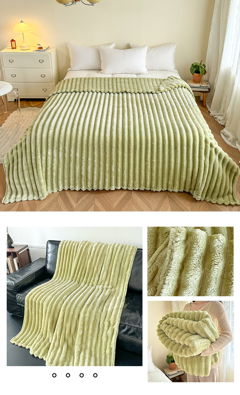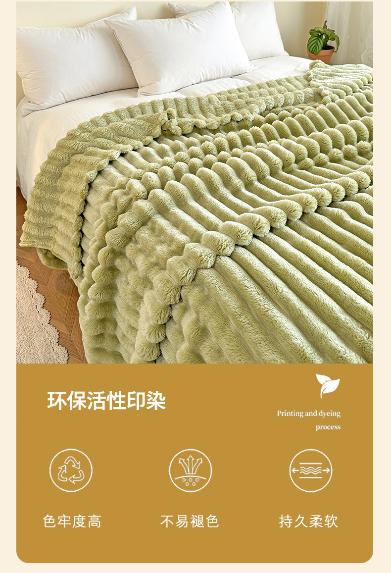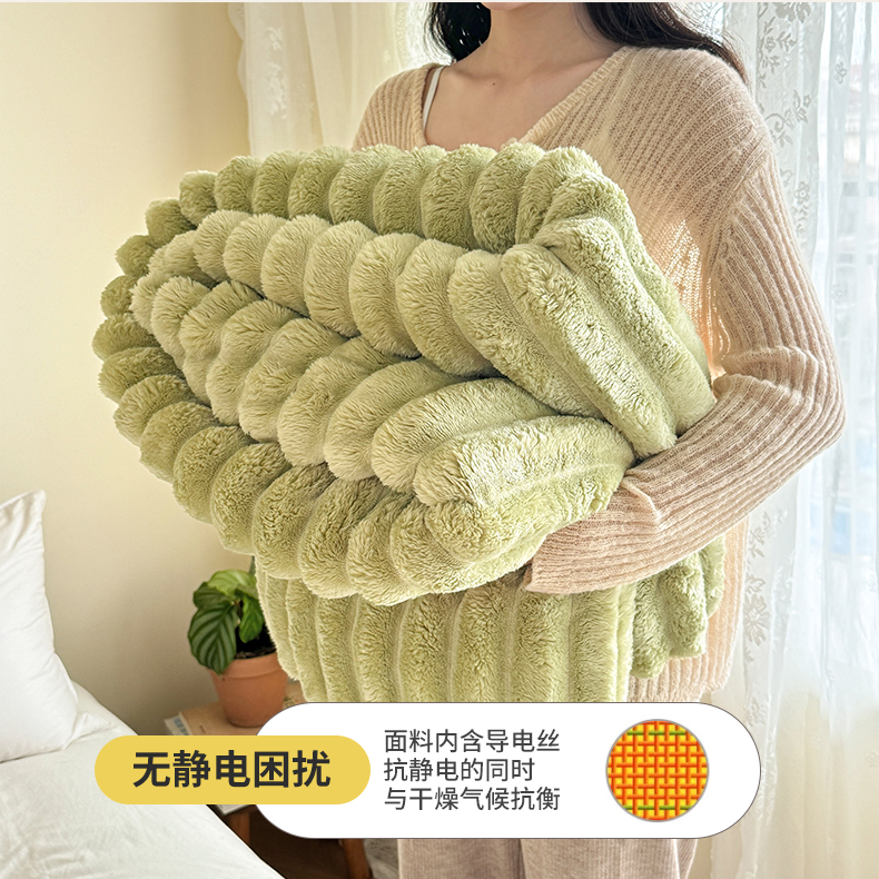 商品名称:璐维斯家纺 2025款跨境专供外贸出口电商热销款仿兔毯加厚牛奶绒盖毯 奶绿