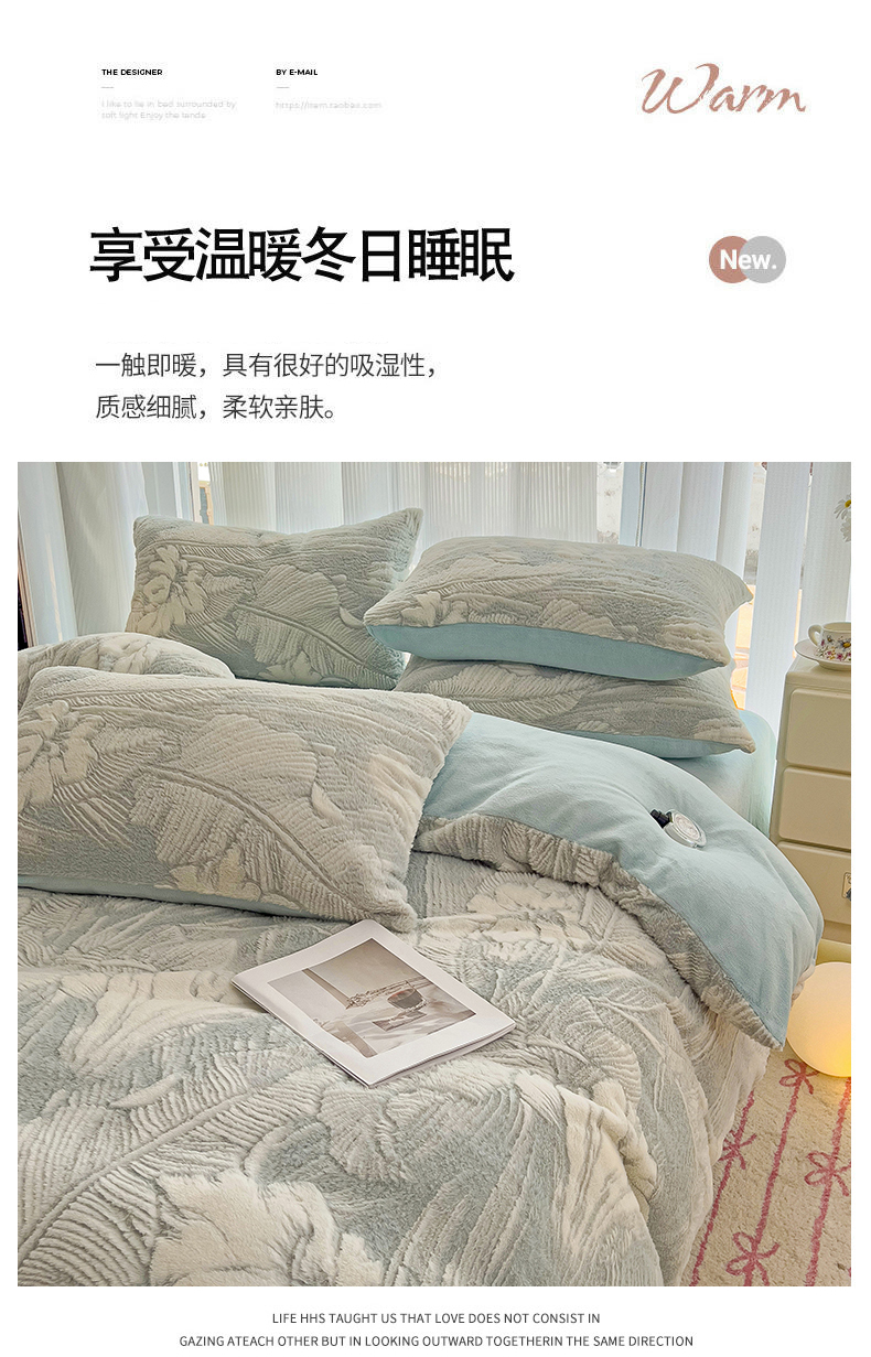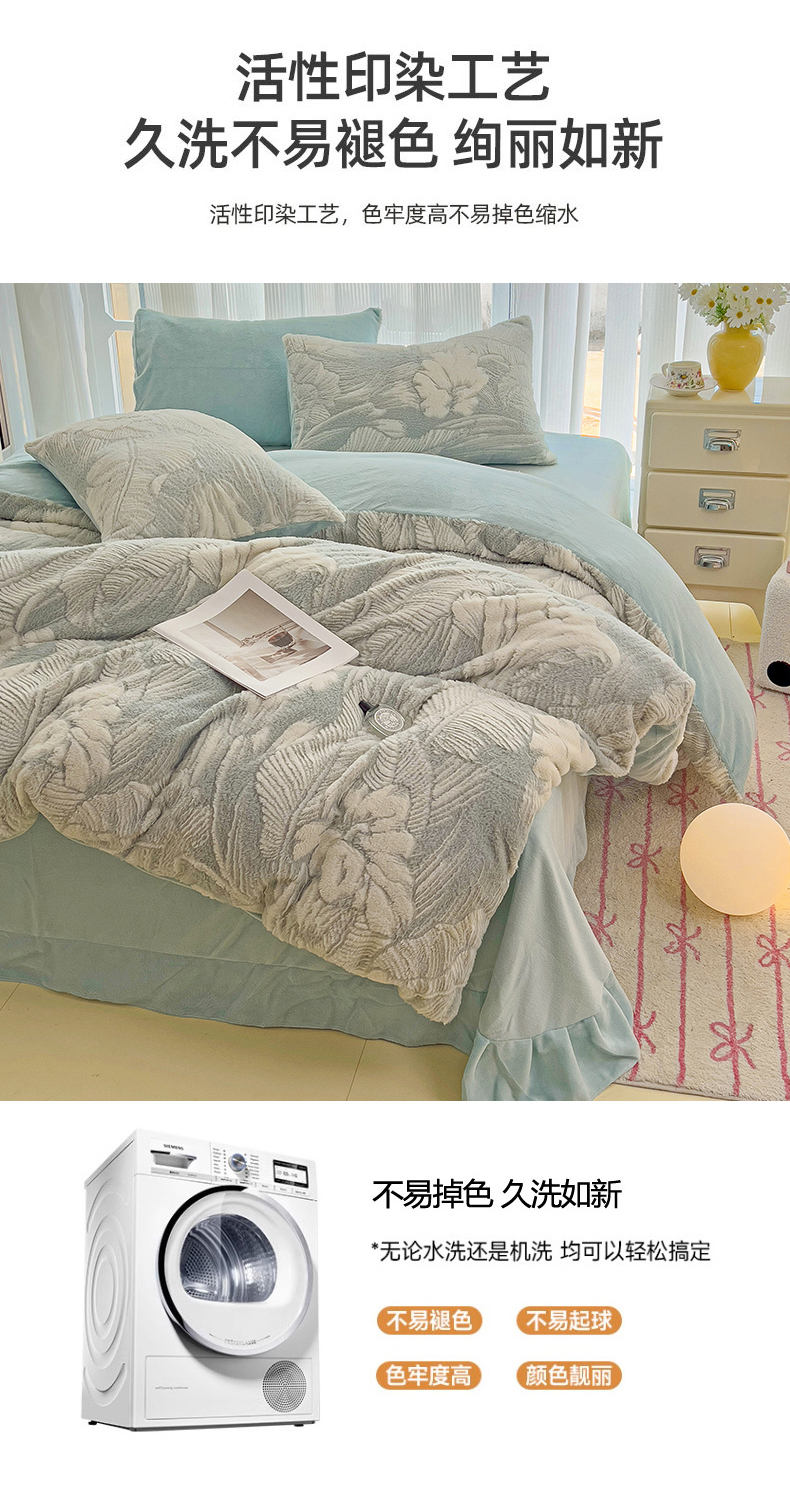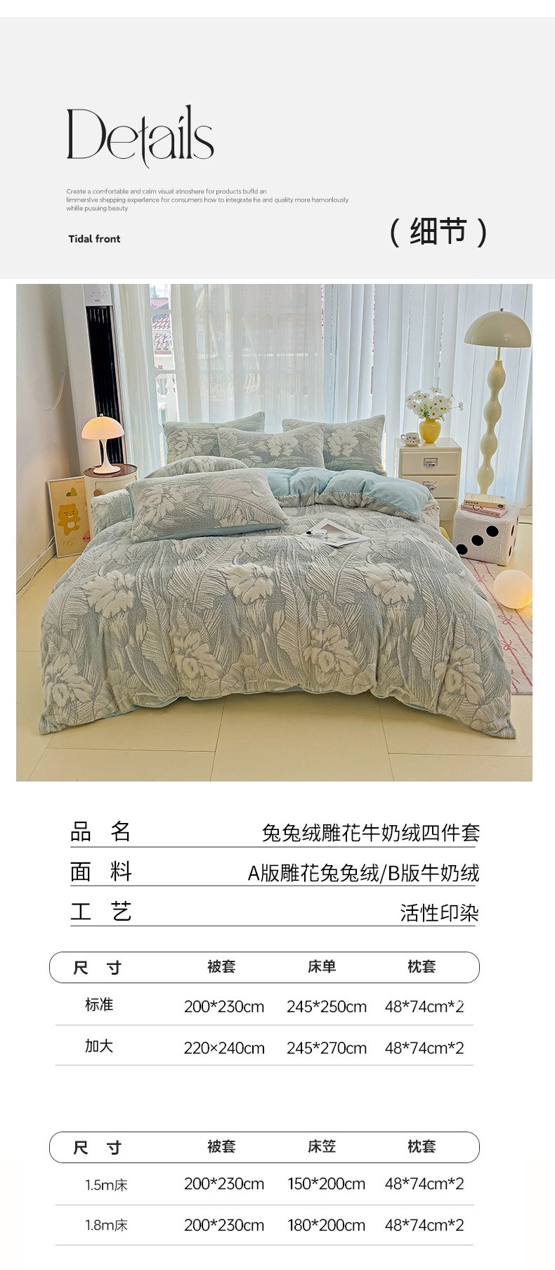 忆生活 2024新款兔兔绒雕花牛奶绒四件套 巴堤娜