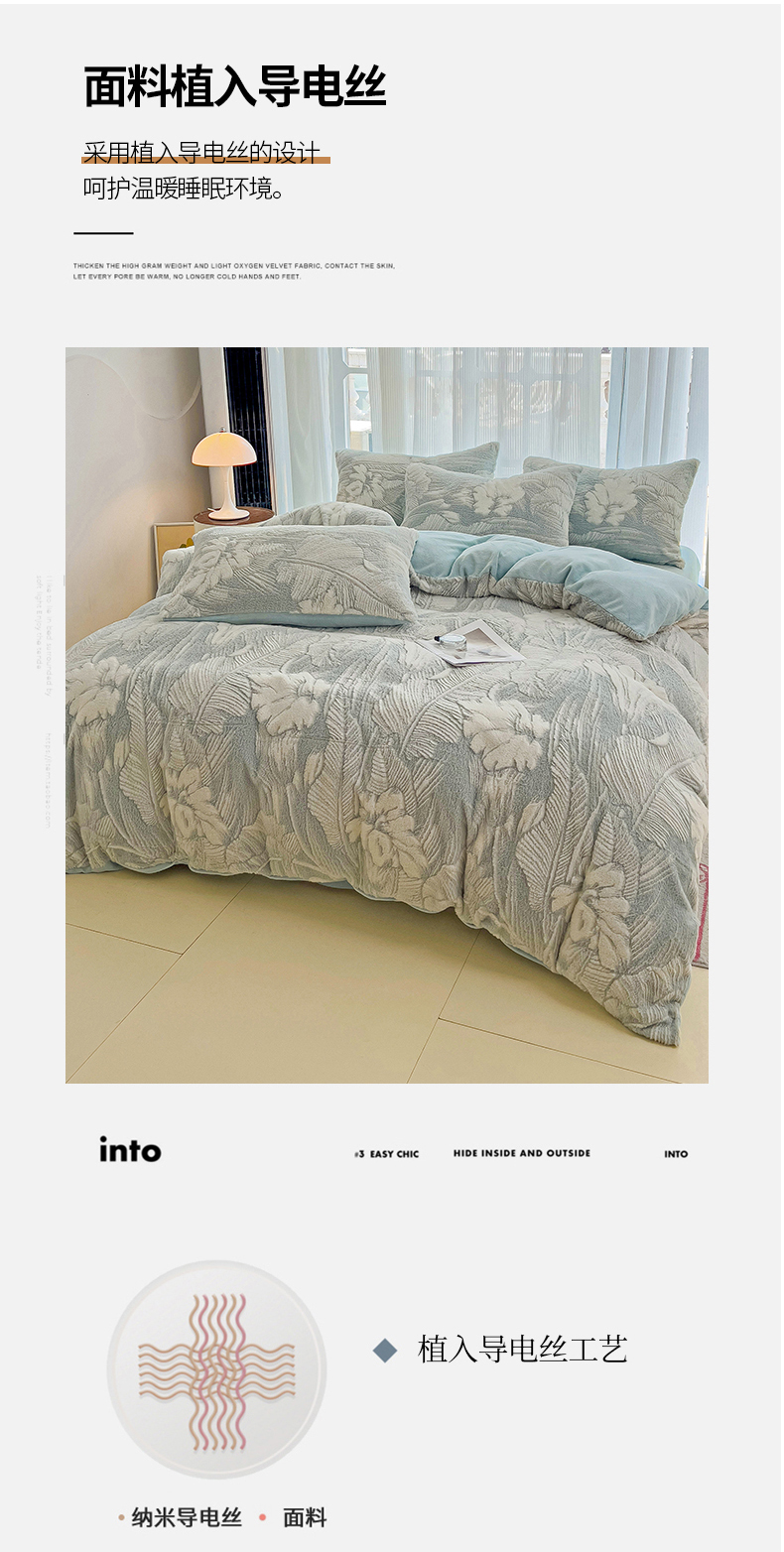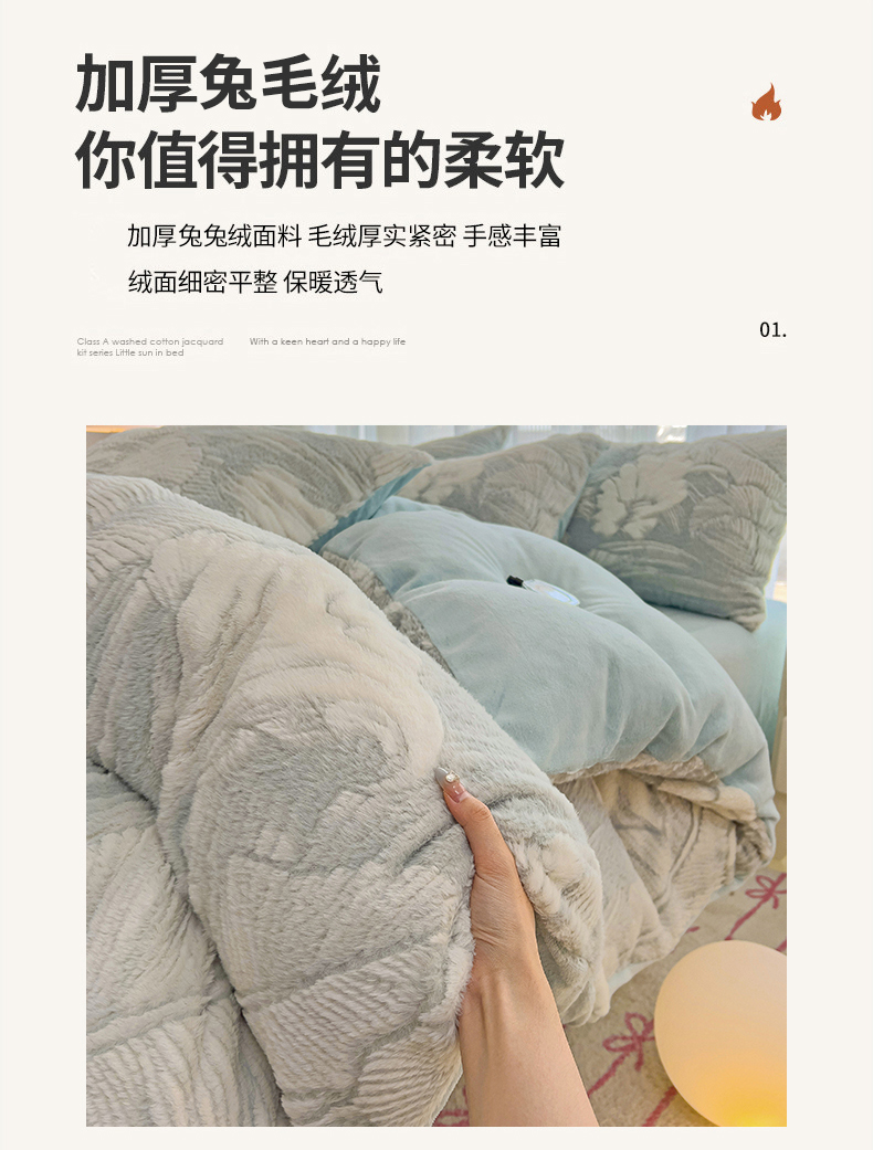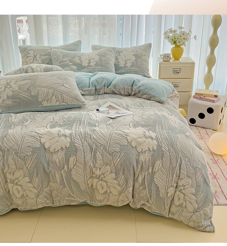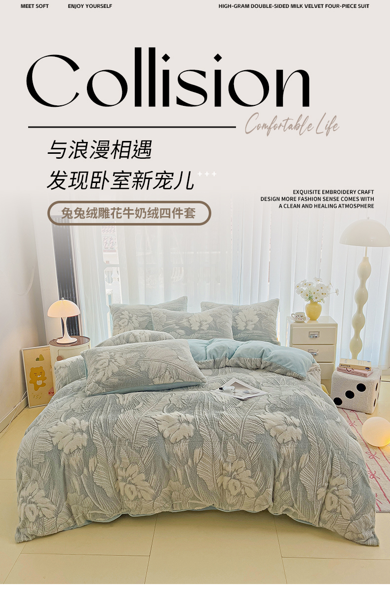 忆生活 2024新款兔兔绒雕花牛奶绒四件套 巴堤娜