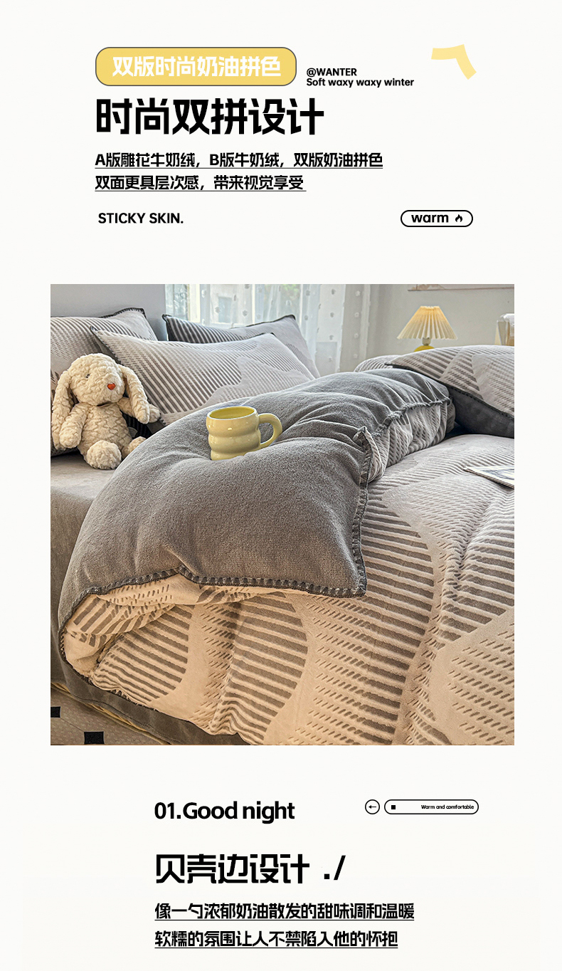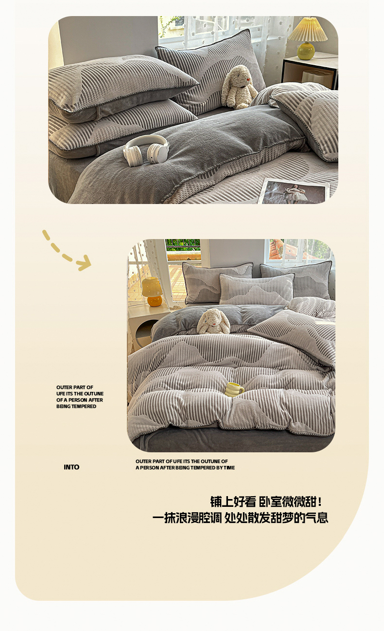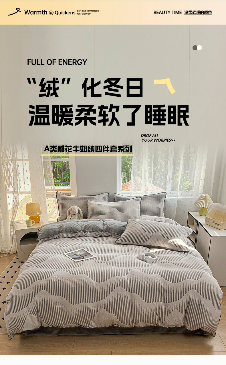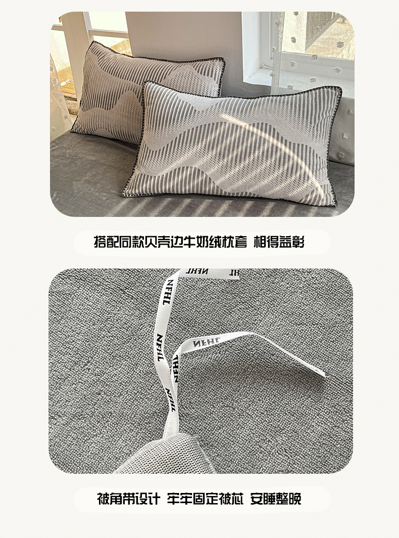 当前位置: 91家纺网 > 商品网购 > 床品套件 > 四件套 > 牛奶绒四件套 > 晚依家纺 2024新款230g全消光牛奶绒四件套 流光-高级灰
