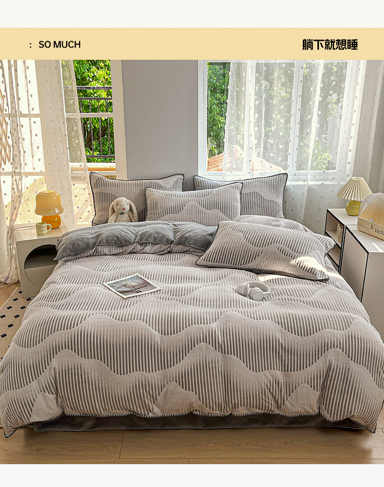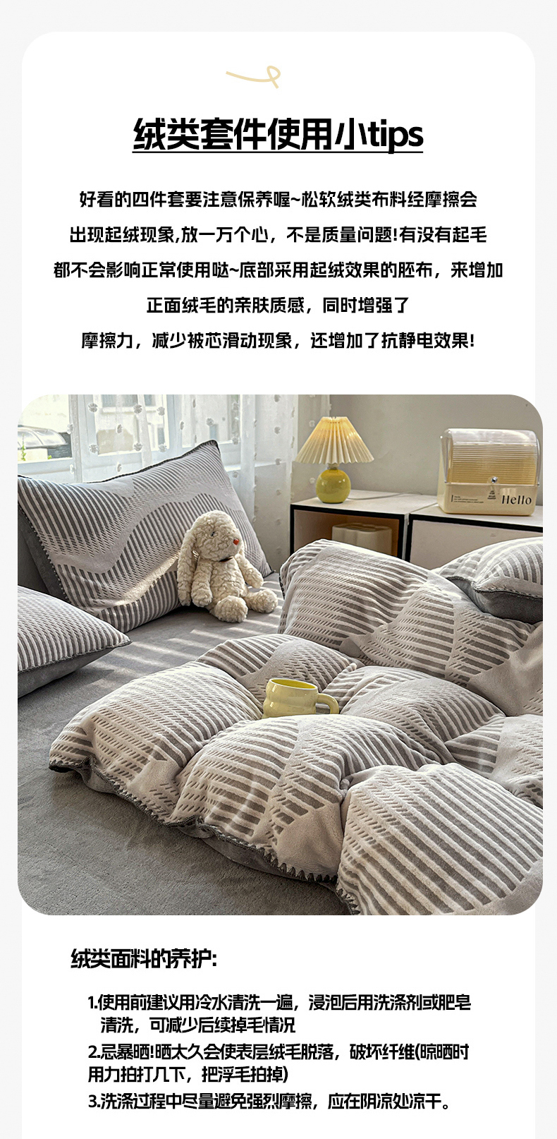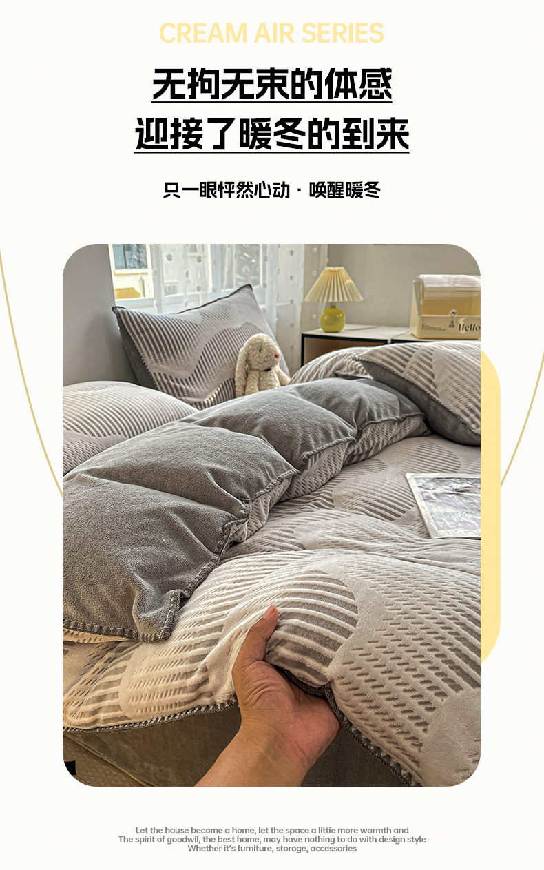 当前位置: 91家纺网 > 商品网购 > 床品套件 > 四件套 > 牛奶绒四件套 > 晚依家纺 2024新款230g全消光牛奶绒四件套 流光-高级灰