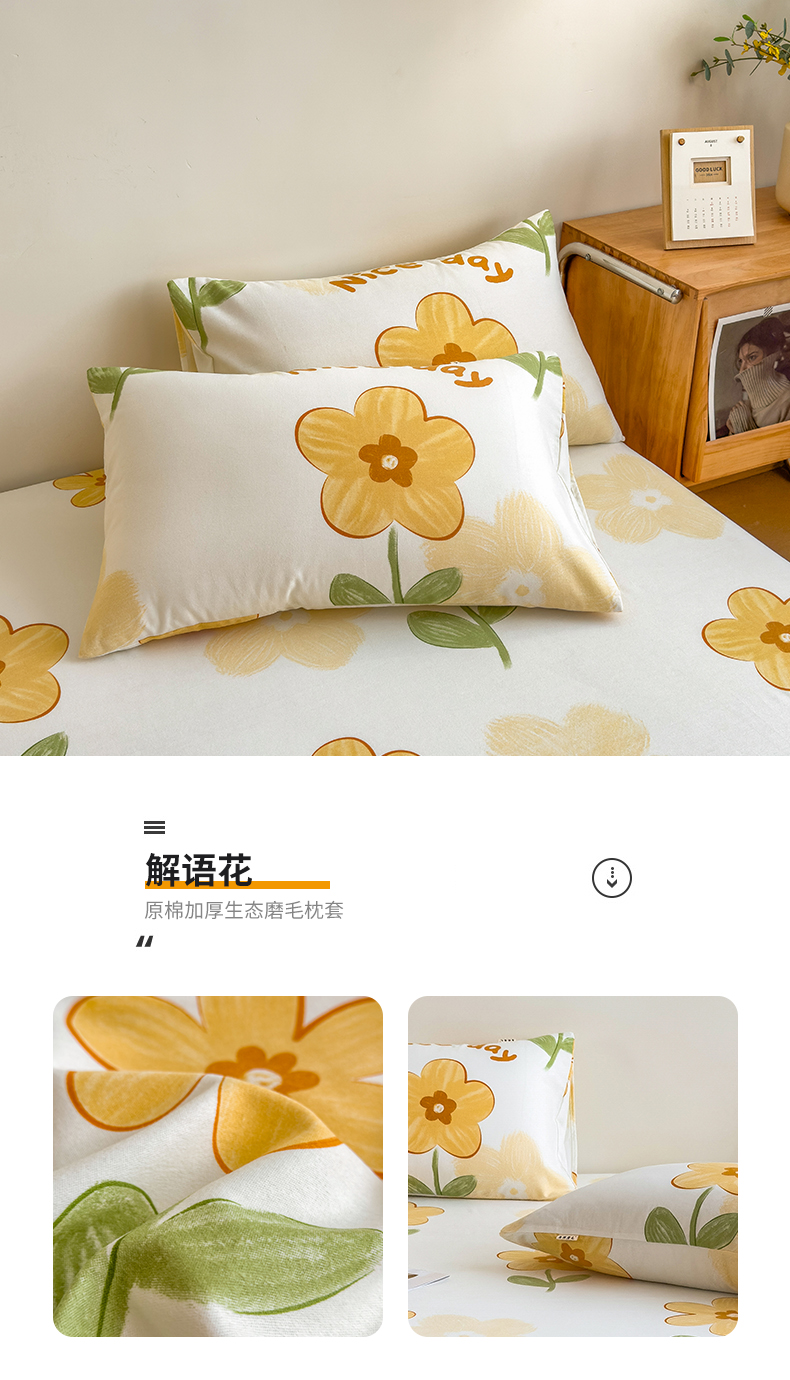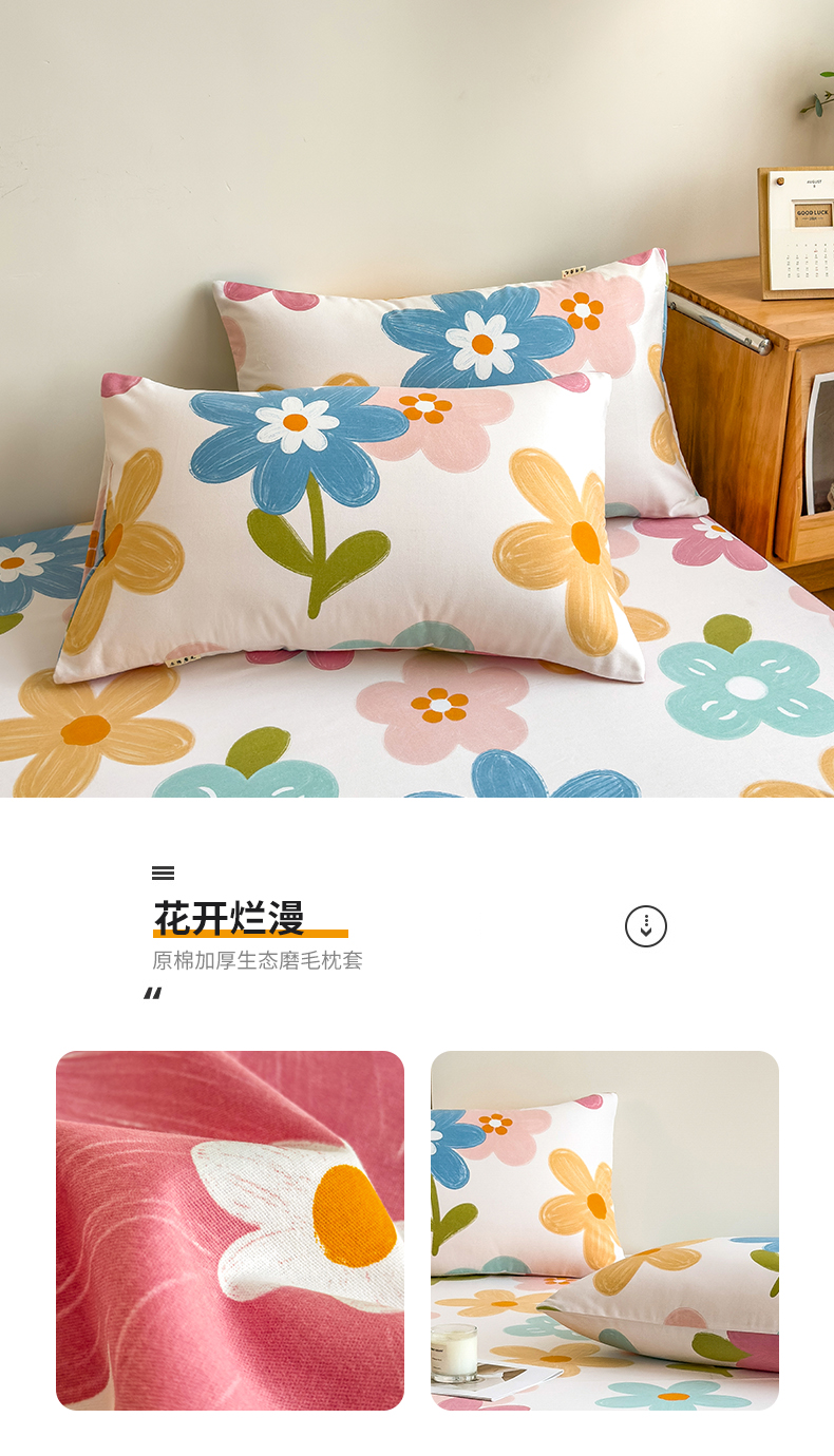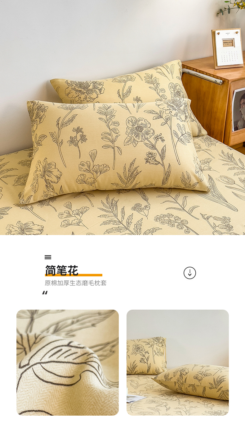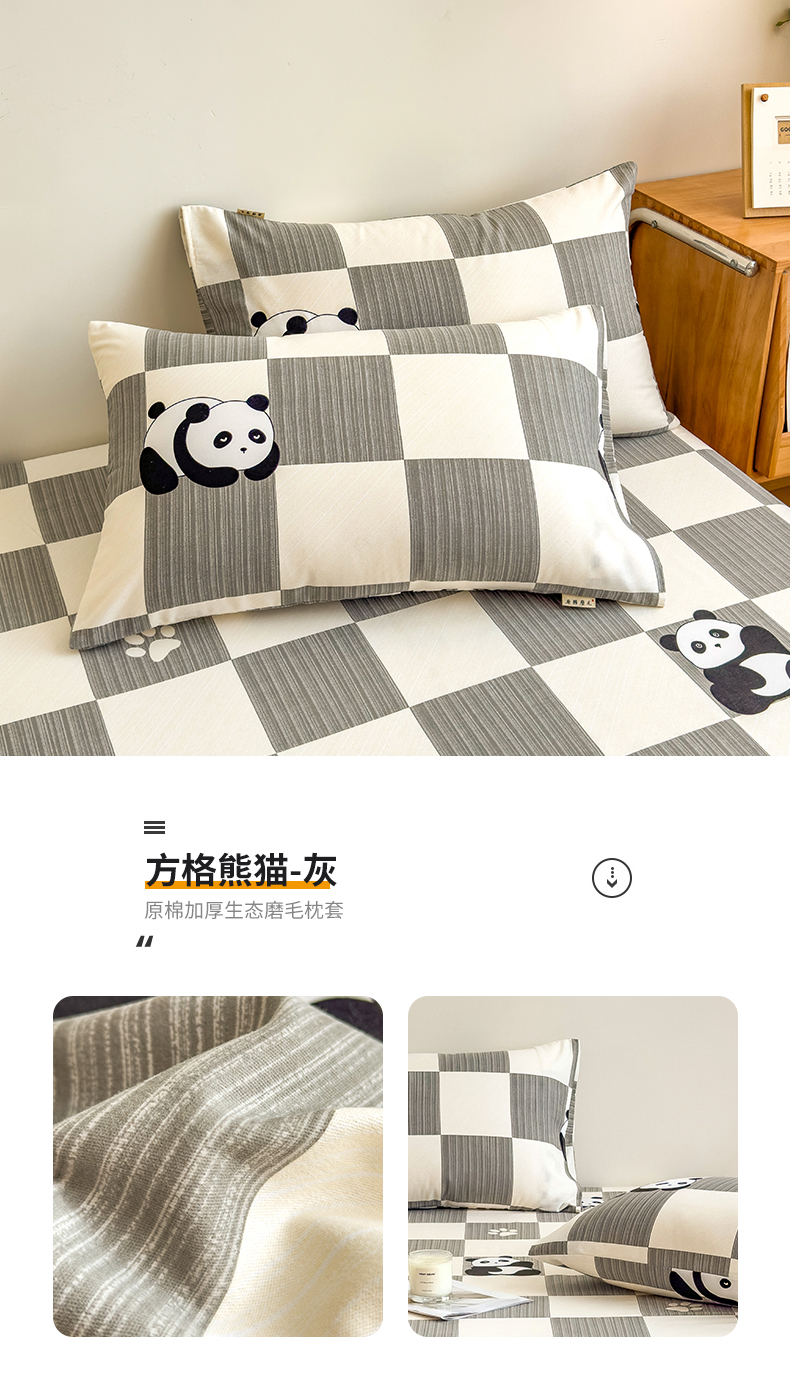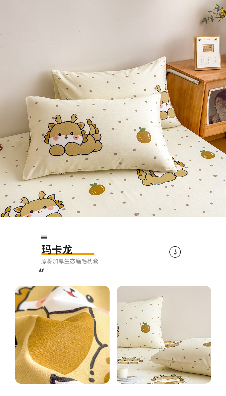 芃成家纺 2024新款原棉加厚生态磨毛单枕套 玛卡龙