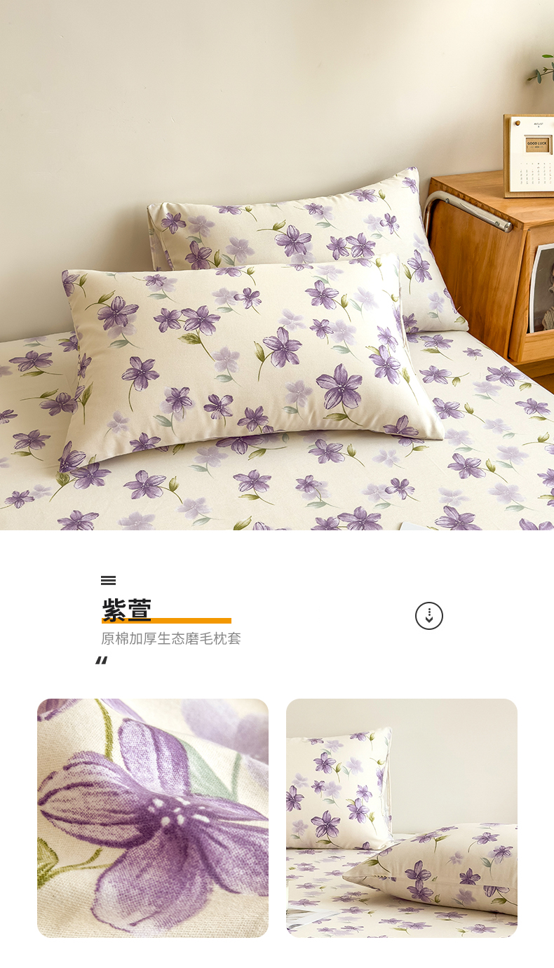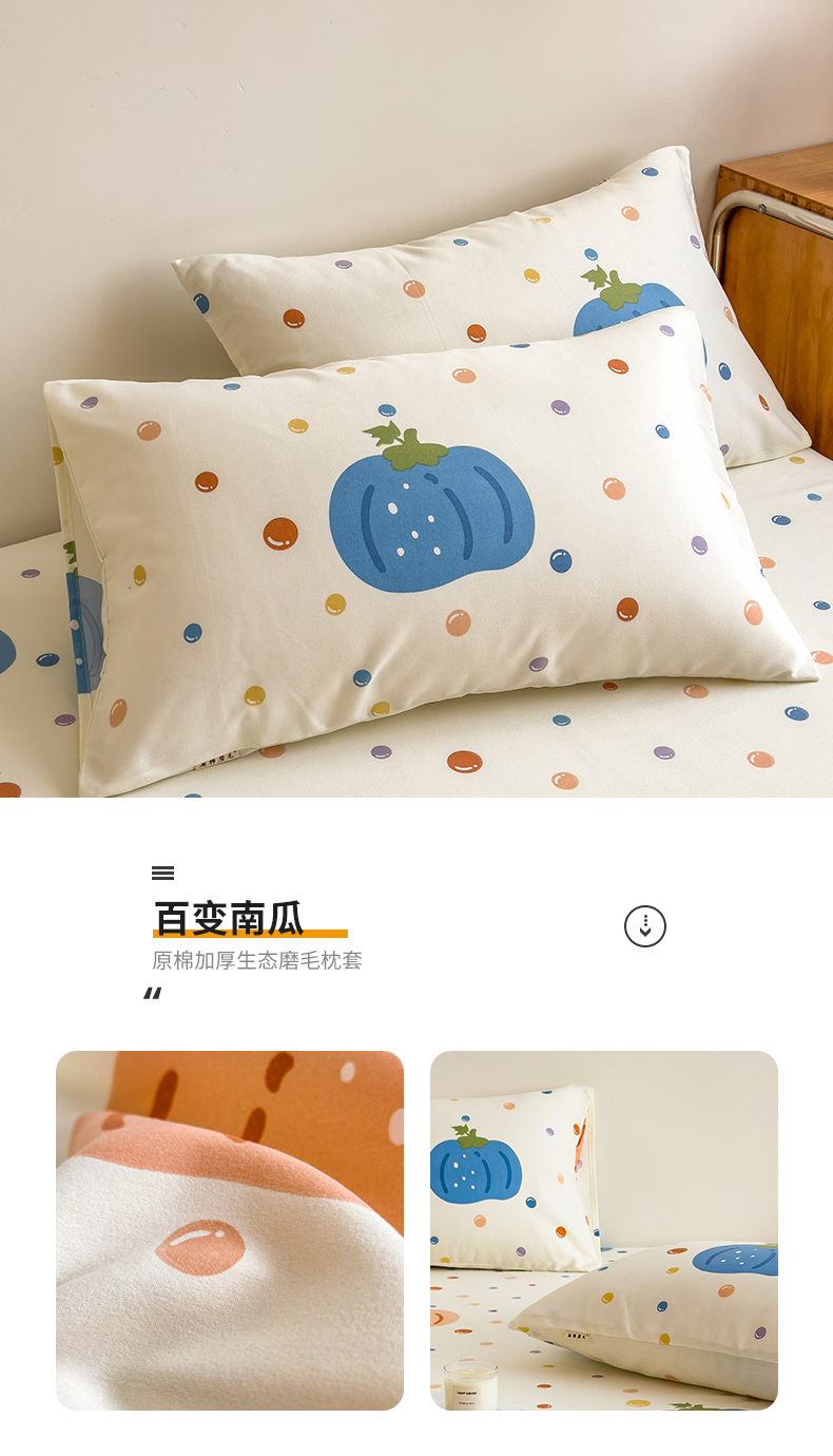 商品名称:芃成家纺 2024新款原棉加厚生态磨毛单枕套 玛卡龙