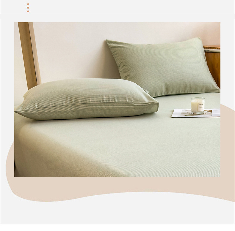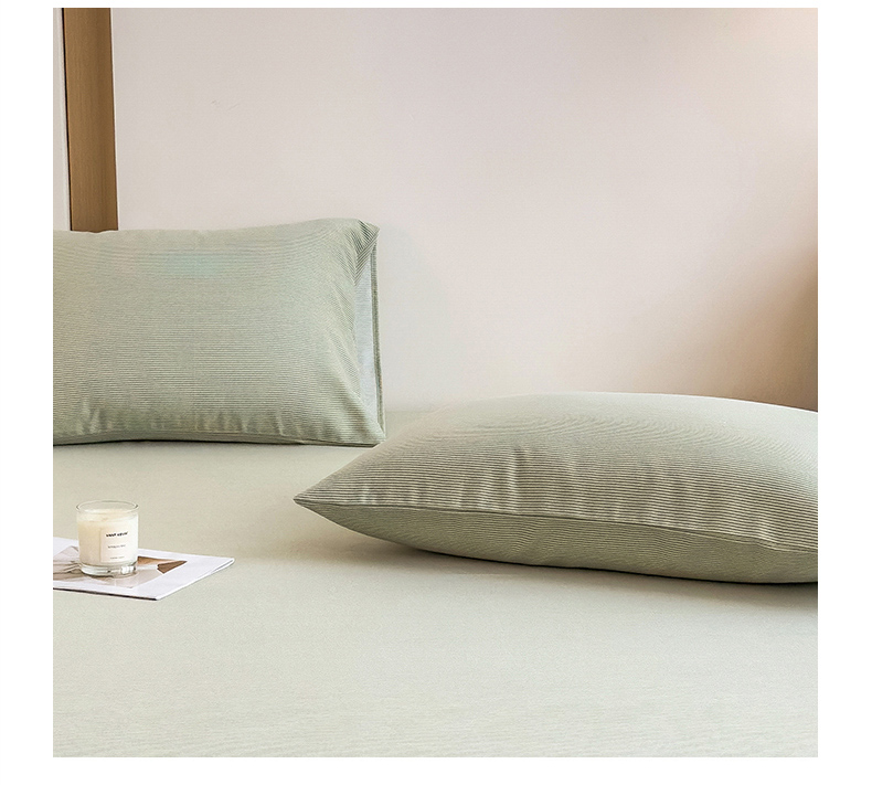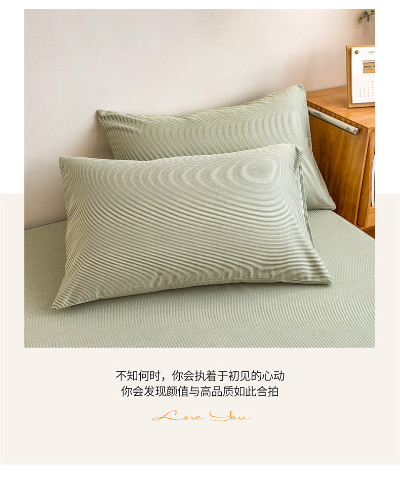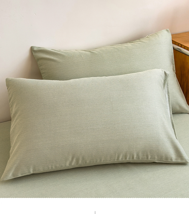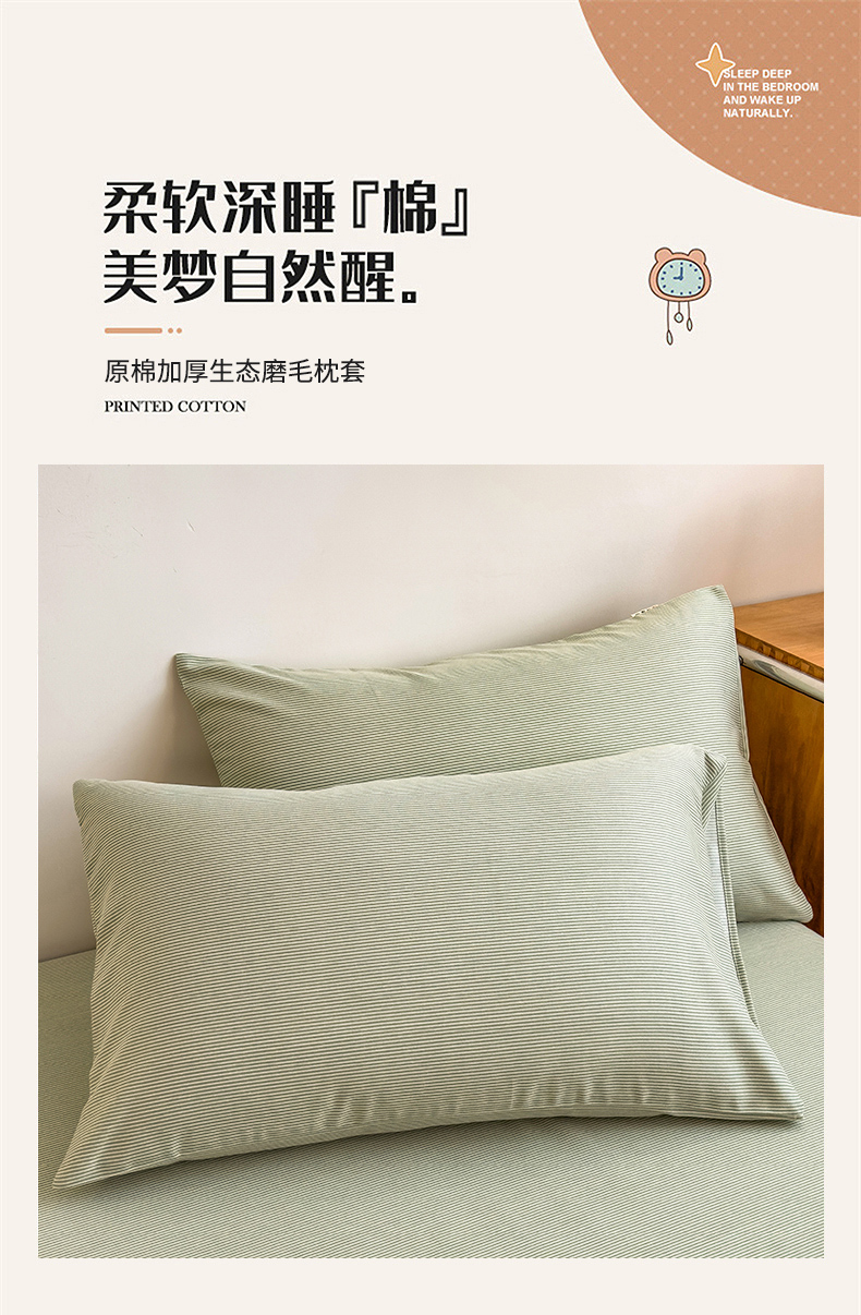 芃成家纺 2024新款原棉加厚生态磨毛单枕套 条纹-绿