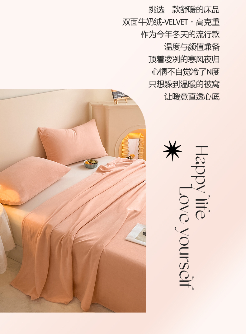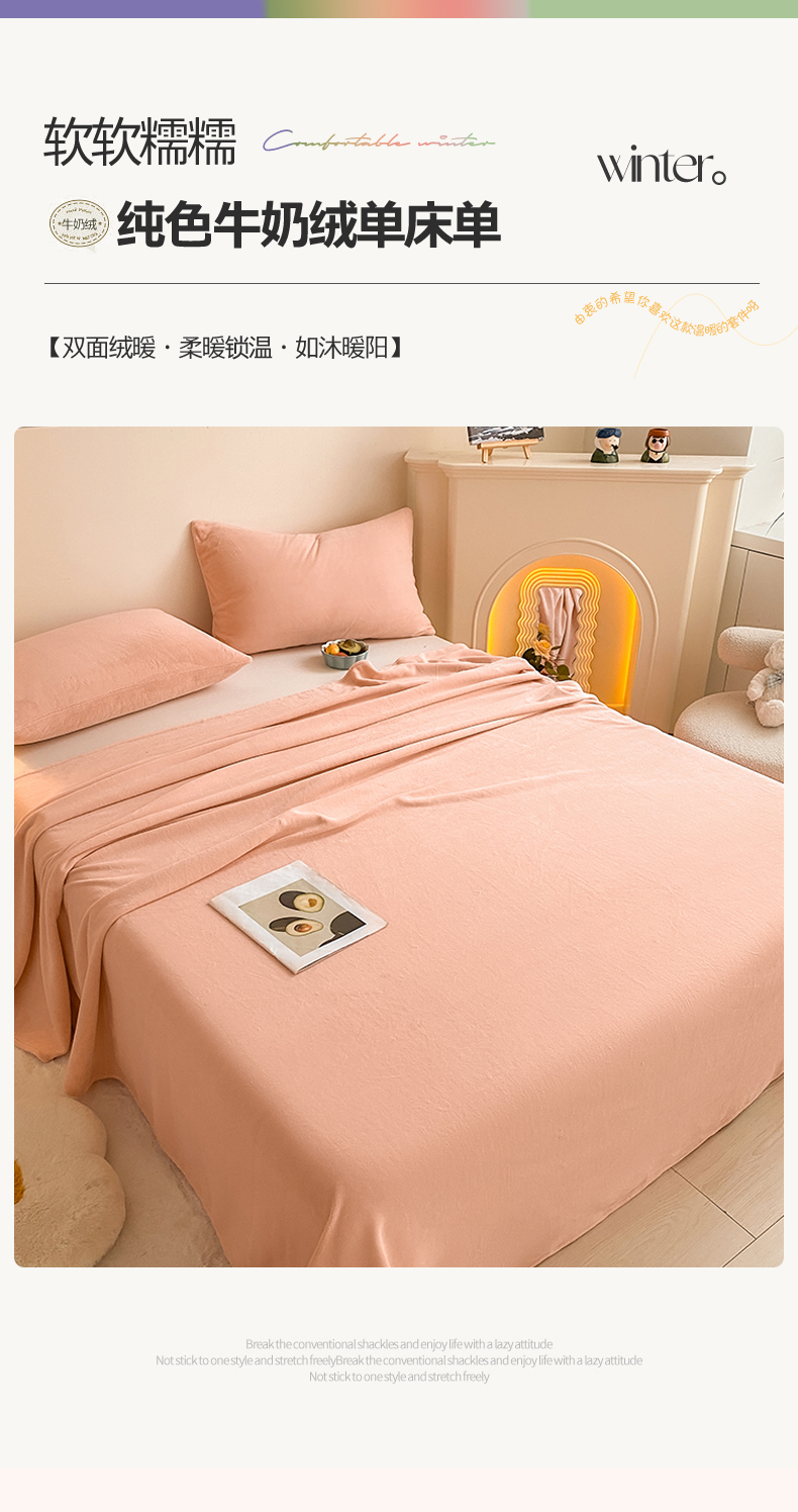 商品名称:眠帛家居 2024新款纯色高克重牛奶绒单床单 奶油粉