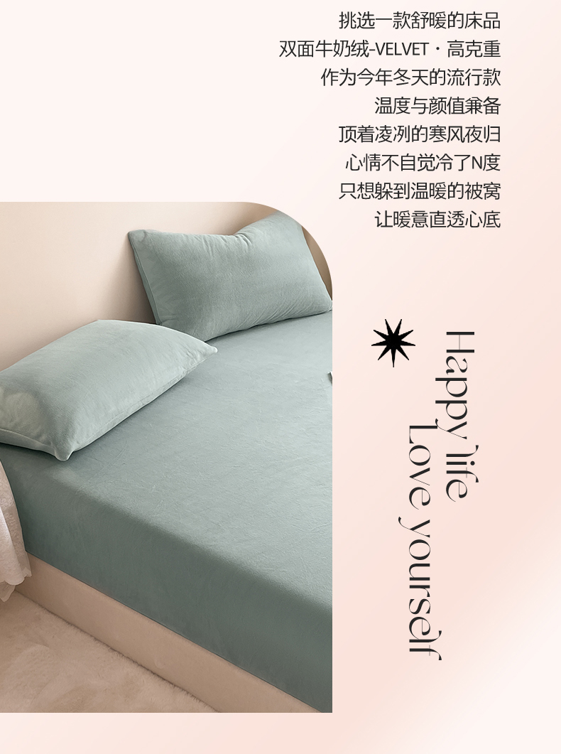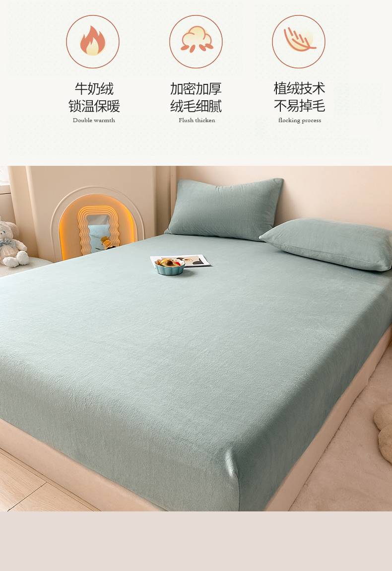 (总)眠帛家居 2024新款纯色高克重牛奶绒单床笠