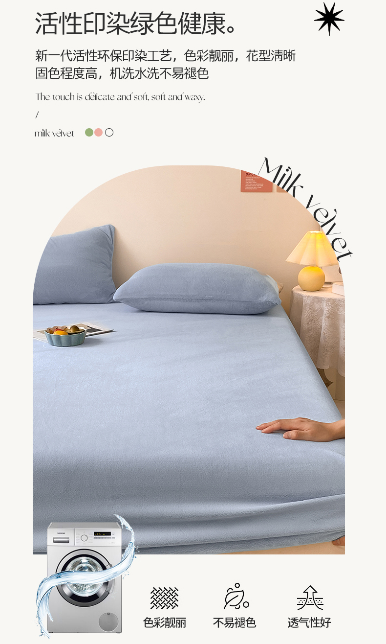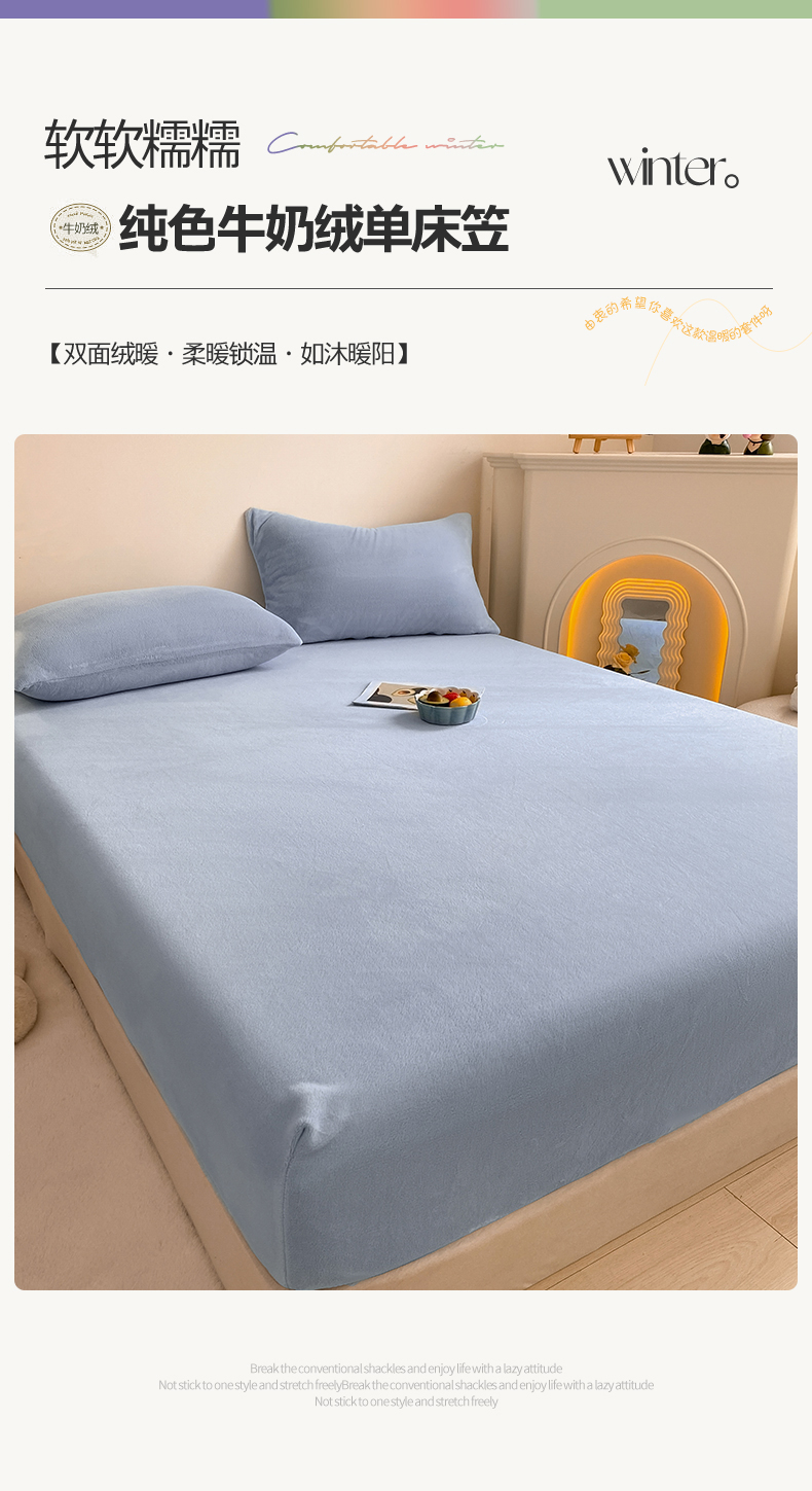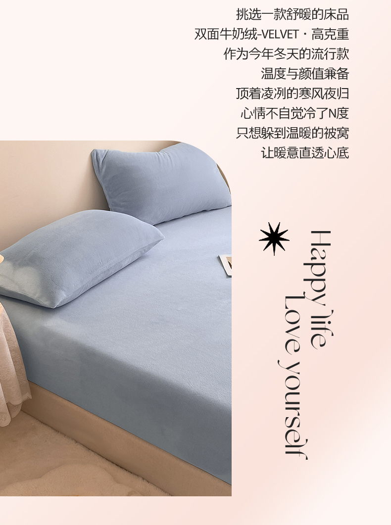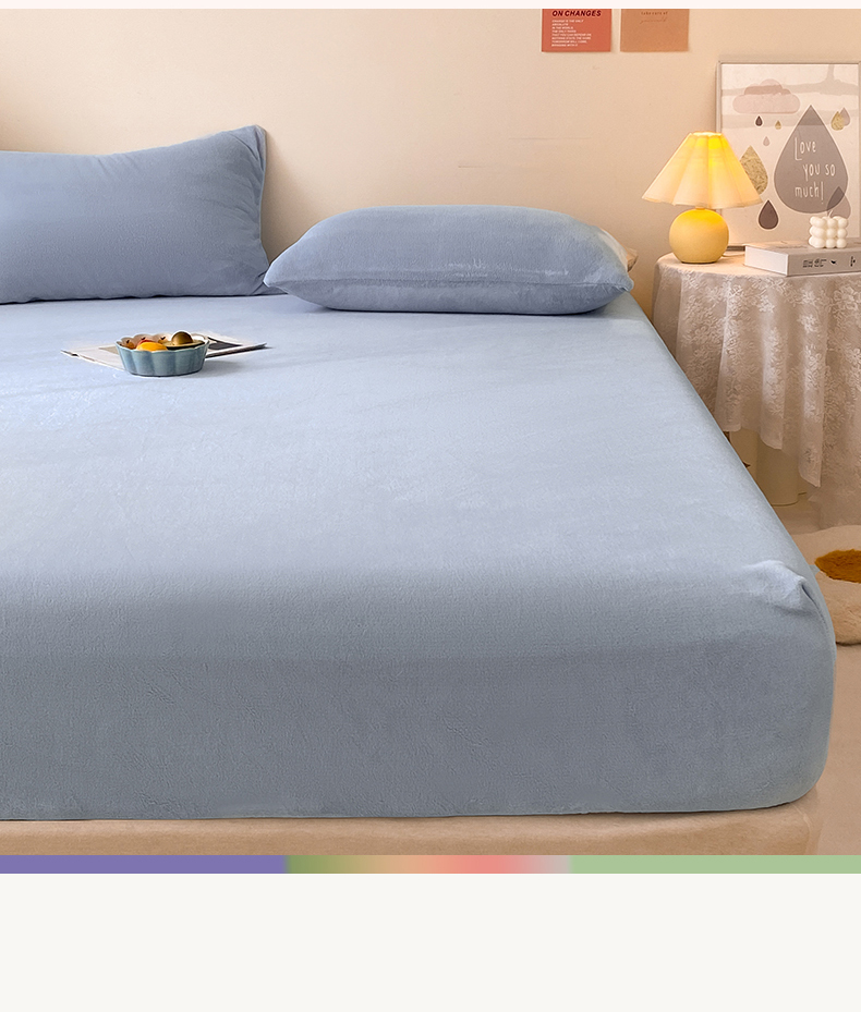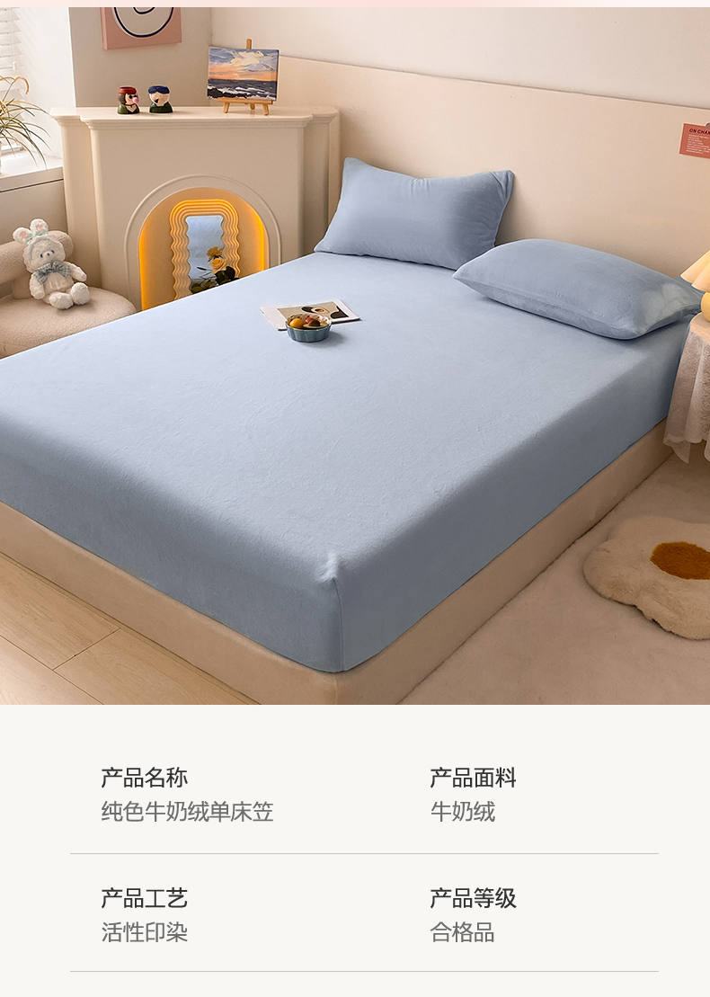 商品名称:眠帛家居 2024新款纯色高克重牛奶绒单床笠 天空蓝