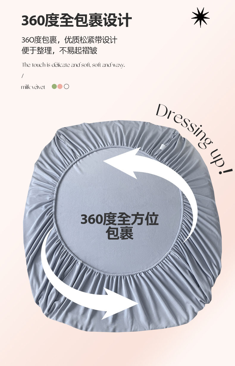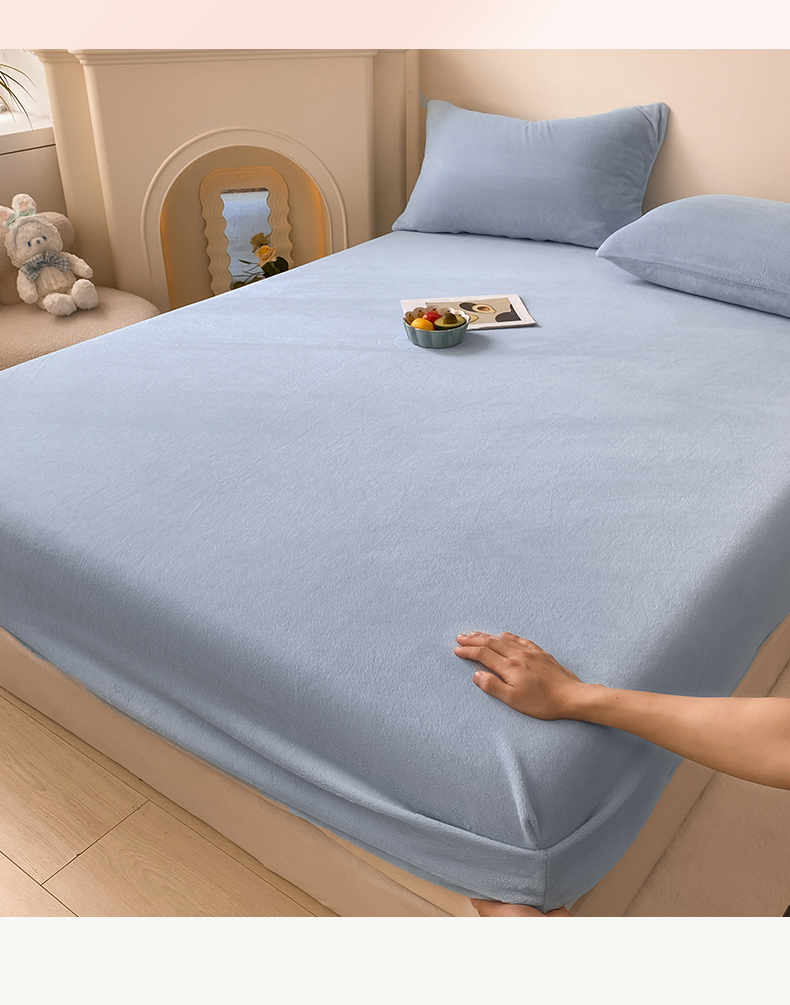 眠帛家居 2024新款纯色高克重牛奶绒单床笠 天空蓝