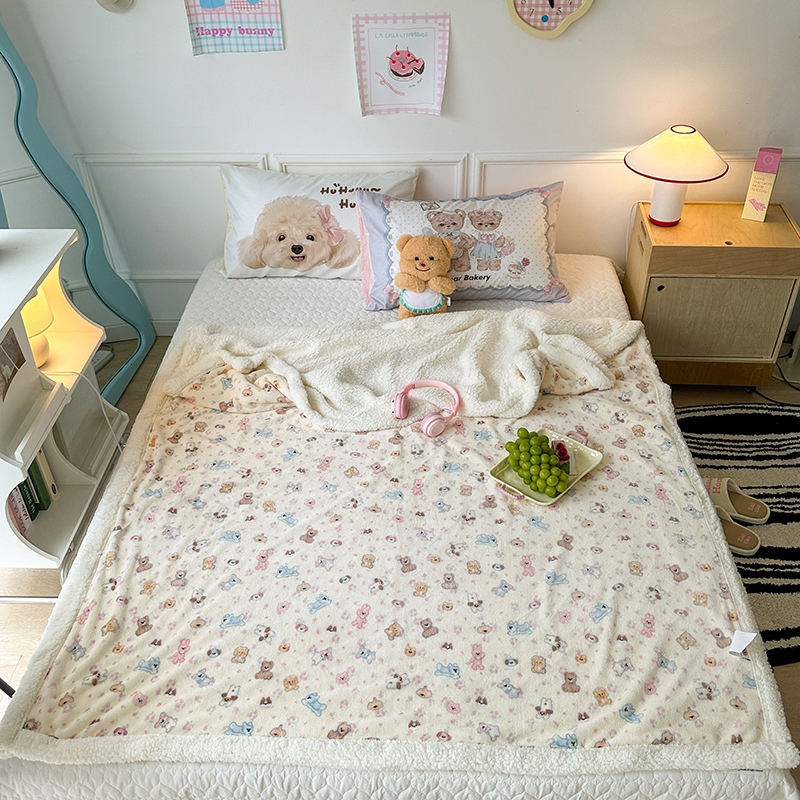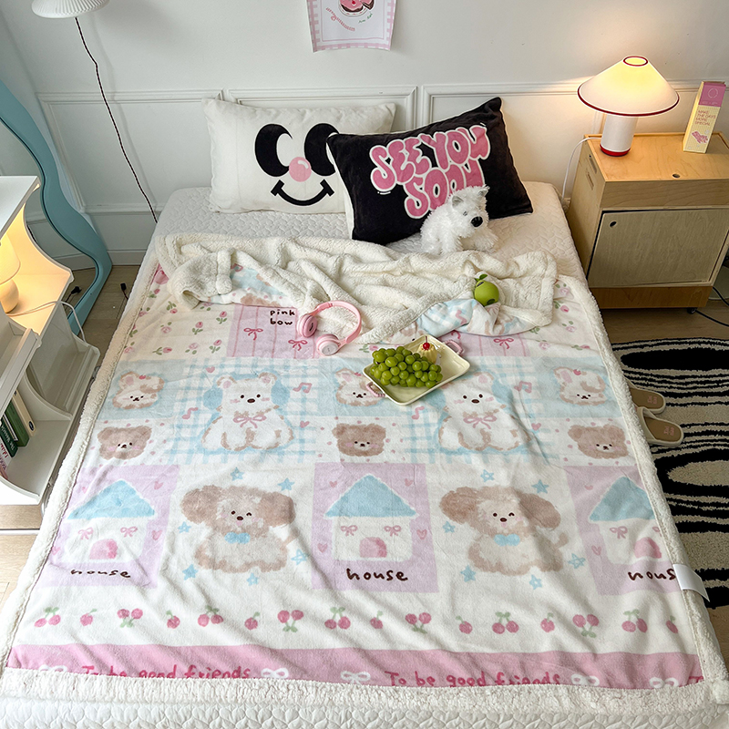 昔可家纺 2024新款羊羔绒牛奶绒毛毯系列(三)-场景二-卡通系列 糖果小狗