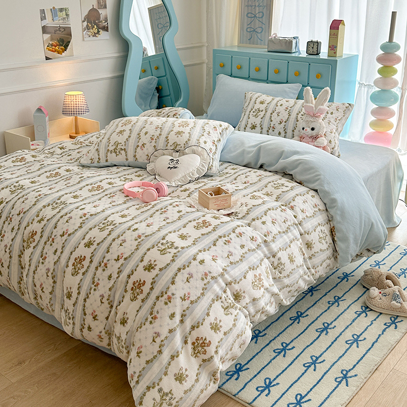 昔可家纺 2024新款印花牛奶绒四件套系列-复古小清新系列 仙仙琉璃花