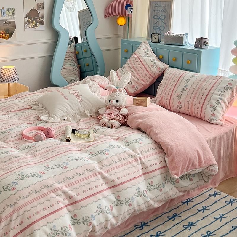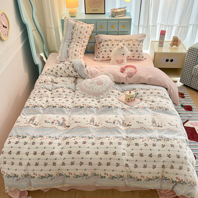 (总)昔可家纺 2024新款印花牛奶绒四件套系列-洛丽塔风,萝莉小兔,小熊烘焙屋,小熊玩偶屋