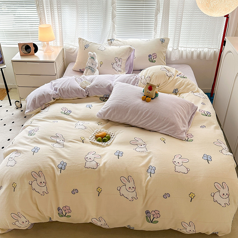 昔可家纺 2024新款印花牛奶绒四件套系列-2023年热款系列 油画小兔