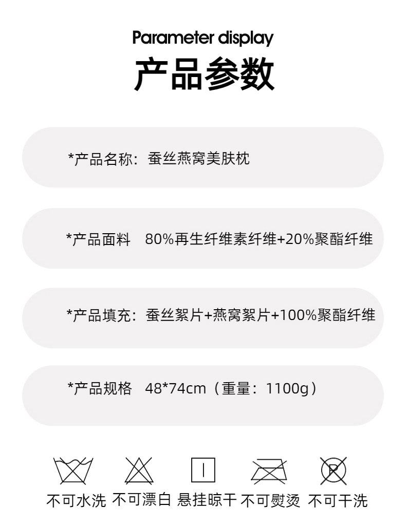 当前位置: 91家纺网 > 商品网购 > 枕头/枕芯/保健枕/颈椎枕 > 普通枕芯 > (总)麦肯锡 2024新款蚕丝燕窝美0肤枕-产品图48*74cm