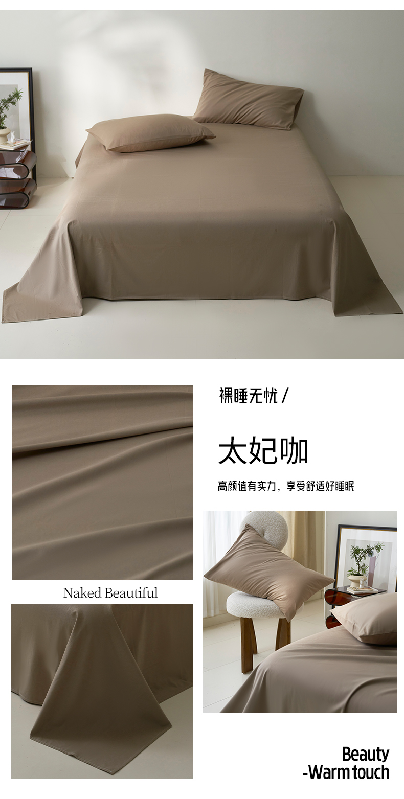• 91家纺网 家纺一手货源 找家纺 2024新款全棉加厚磨毛纯色单床单系列 太妃咖