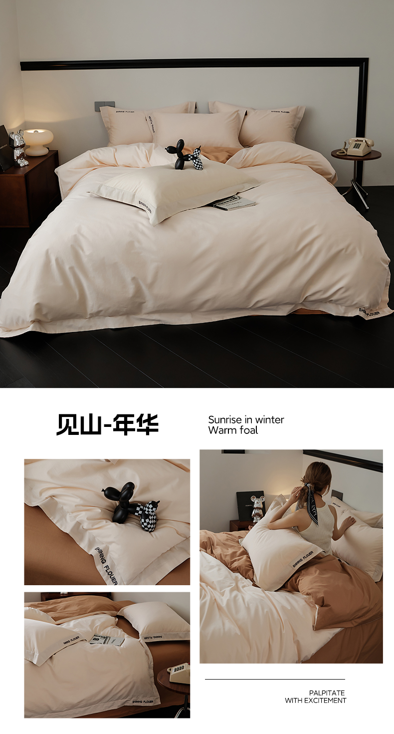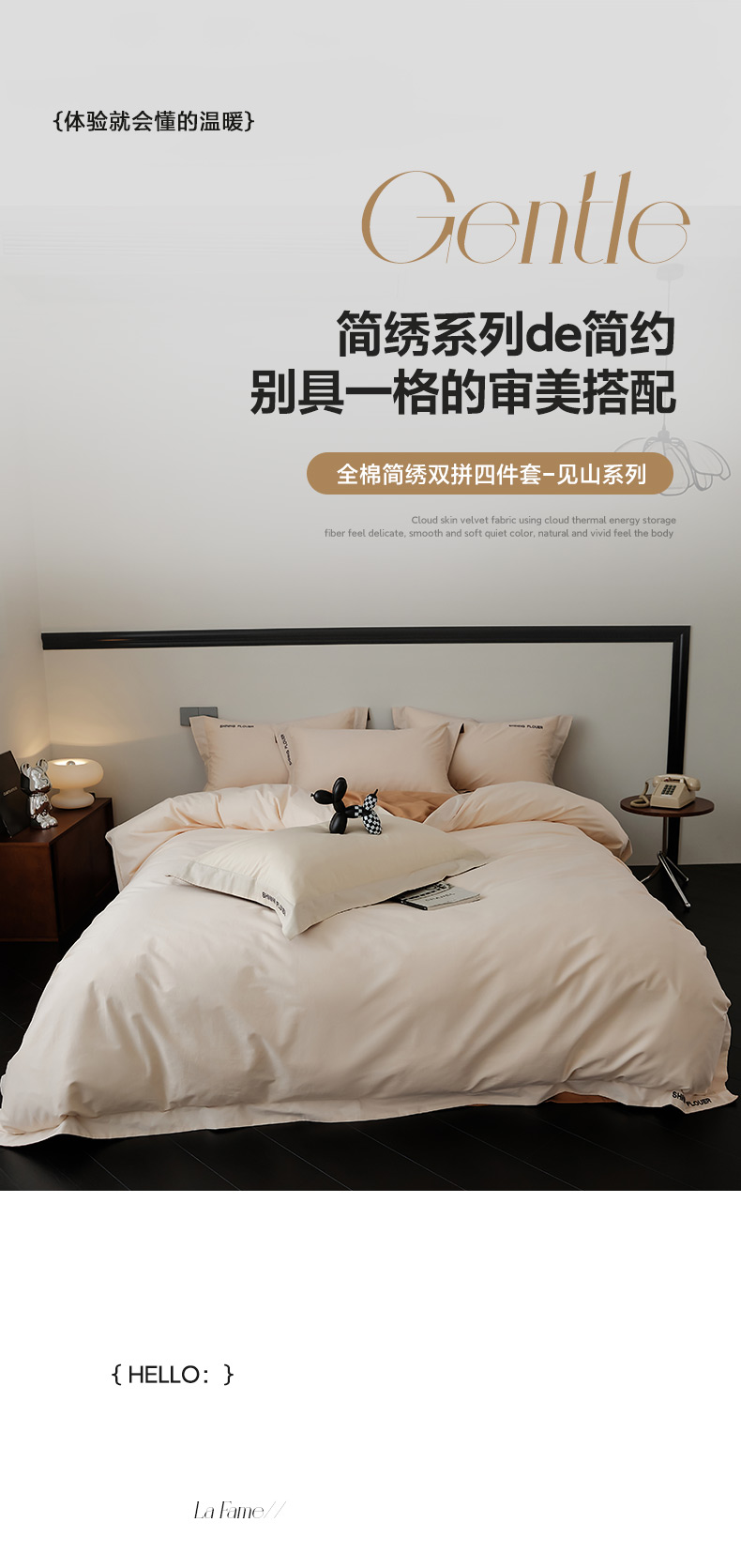 当前位置: 91家纺网 > 商品网购 > 床品套件 > 四件套 > 全棉普通四件套 > EH家居 2024新款见山系列全棉简绣双拼四件套 见山-年华
