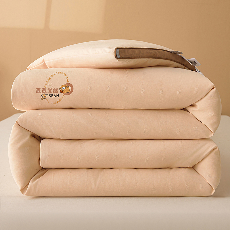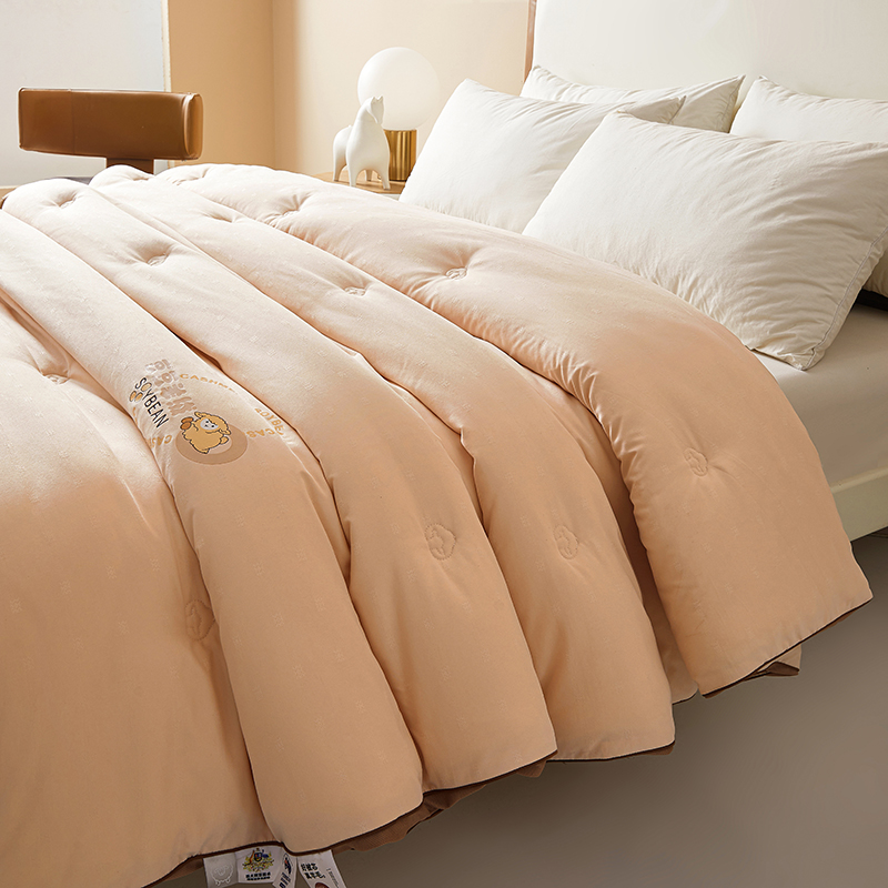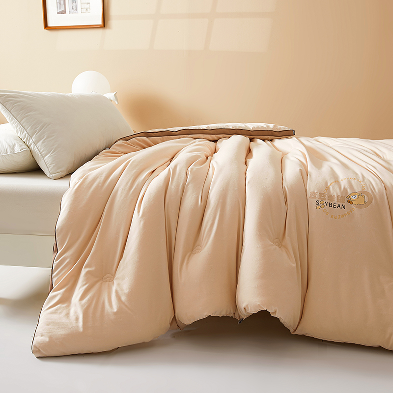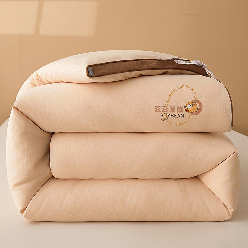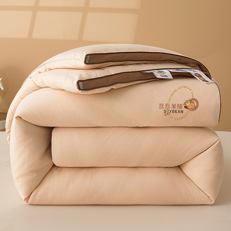 (总)米洛贝伊 2025新款艾绒暖芯被大豆被被子被芯冬被,花庭玉,奶杏色