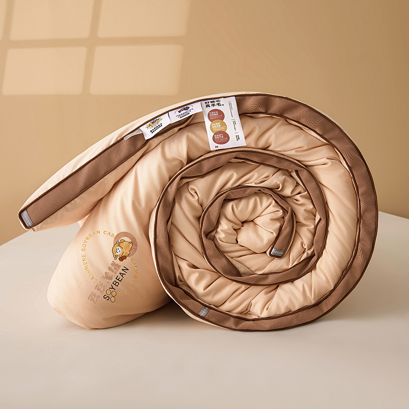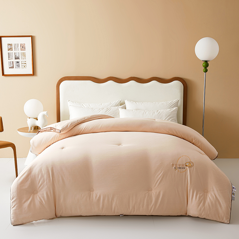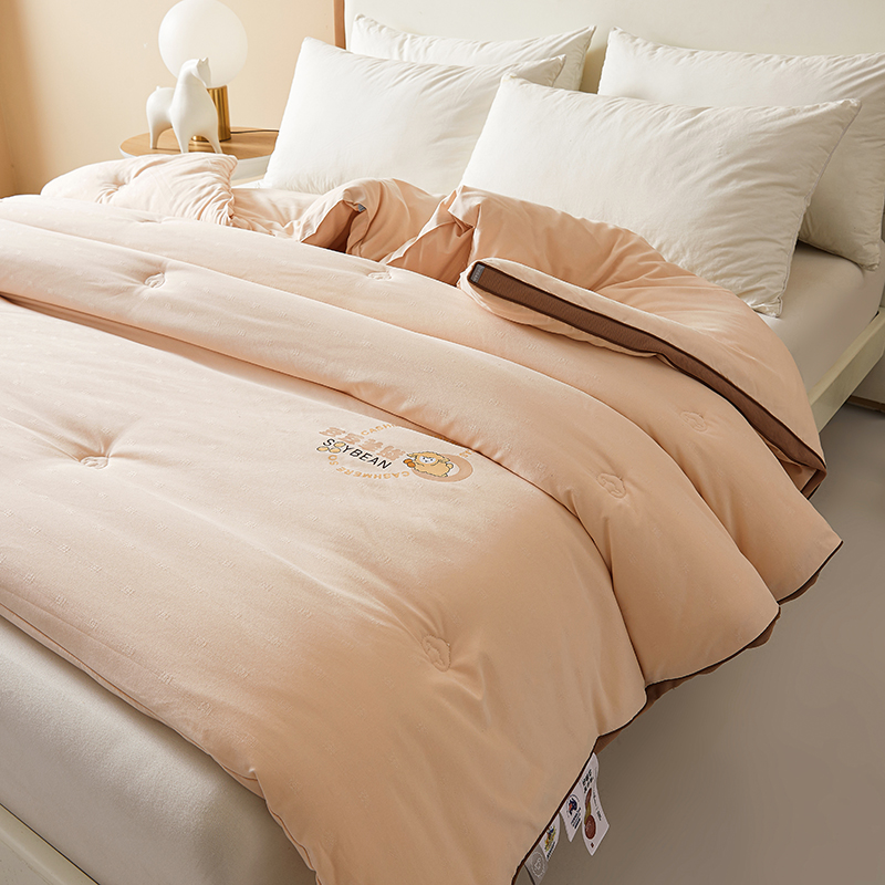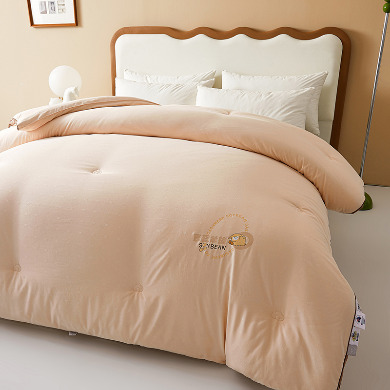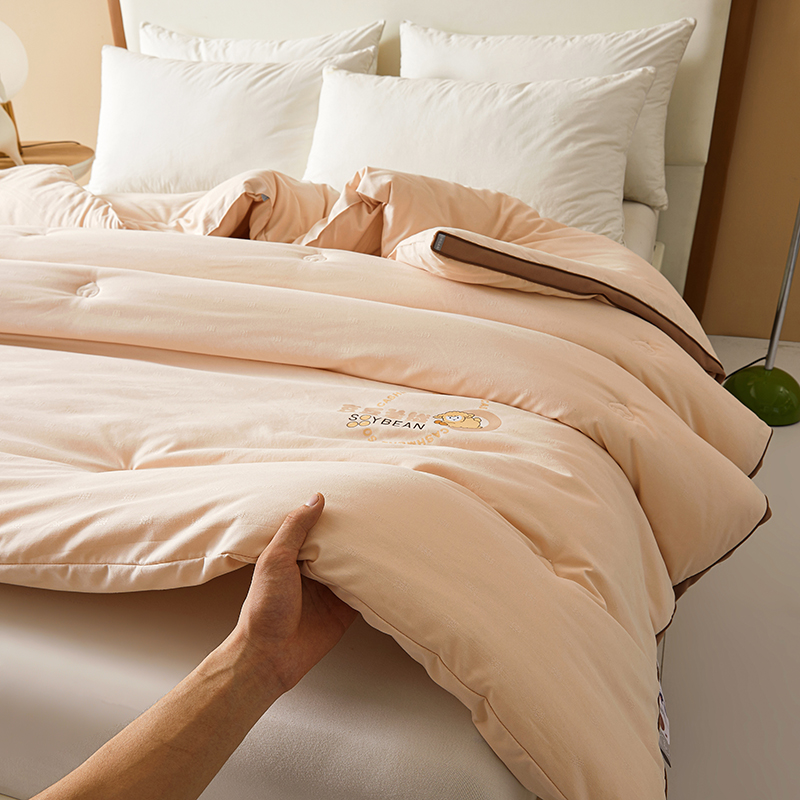 (总)米洛贝伊 2025新款艾绒暖芯被大豆被被子被芯冬被,花庭玉,奶杏色