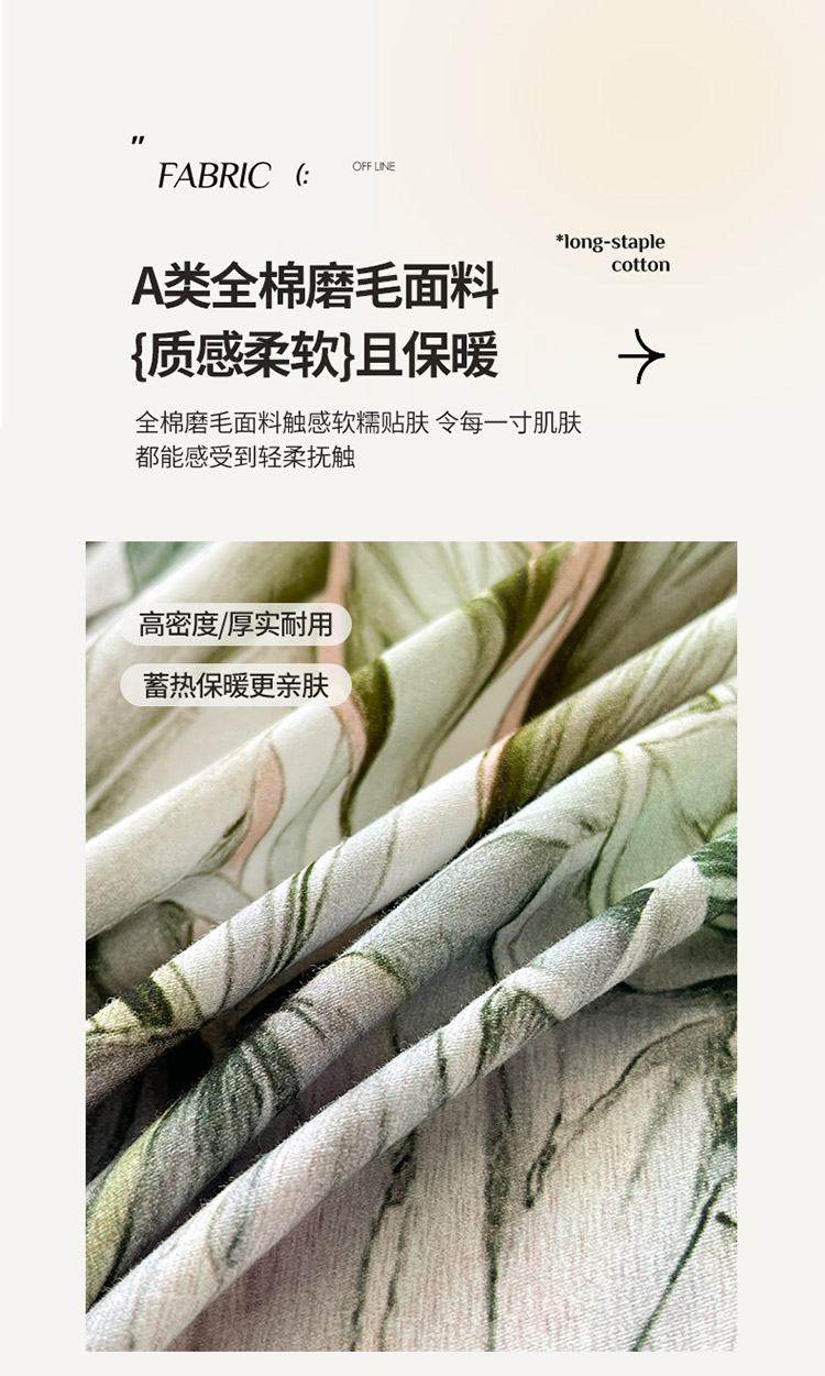 商品名称:秋冬A类加厚纯棉磨毛四件套保暖活性印花轻奢全棉被套床单床笠款床上用品 吉娅