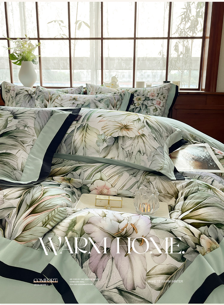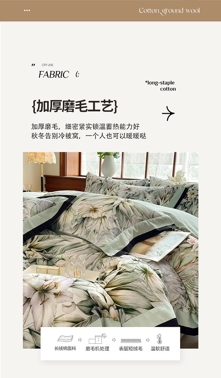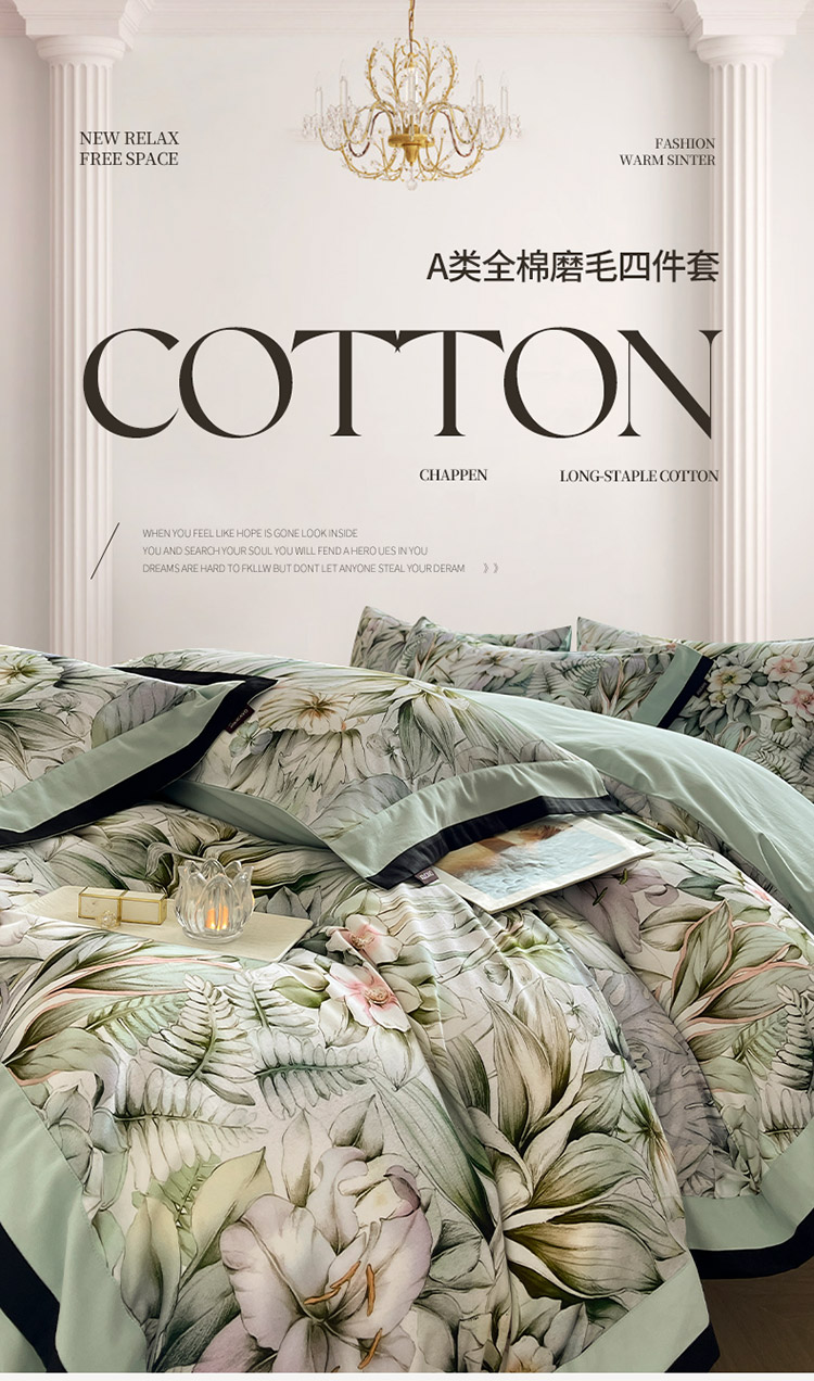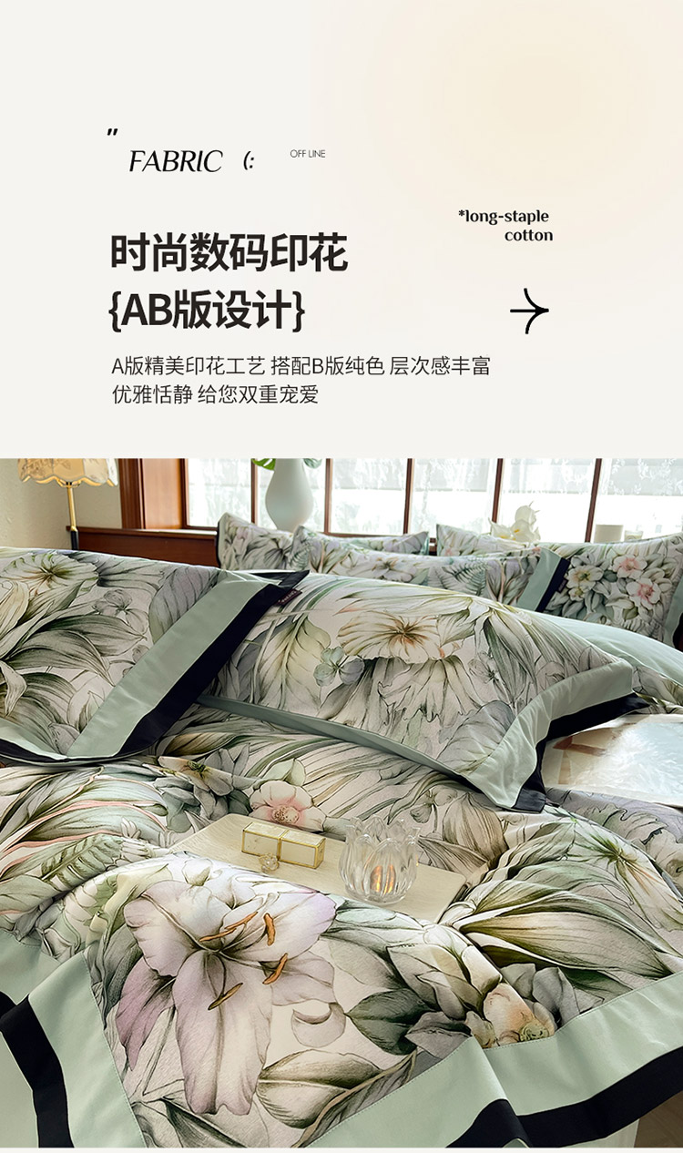 (总)乔利卡沃 2025秋冬季A类加厚全棉磨毛四件套纯棉保暖美式轻奢长绒棉数码印花高端床上用品,花弄影-黄,花弄影-蓝,花弄影-米,花弄影-紫