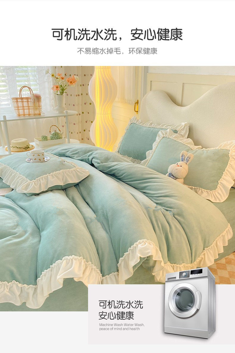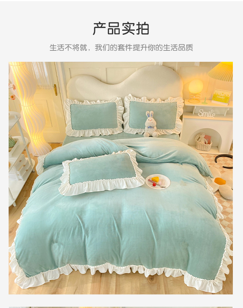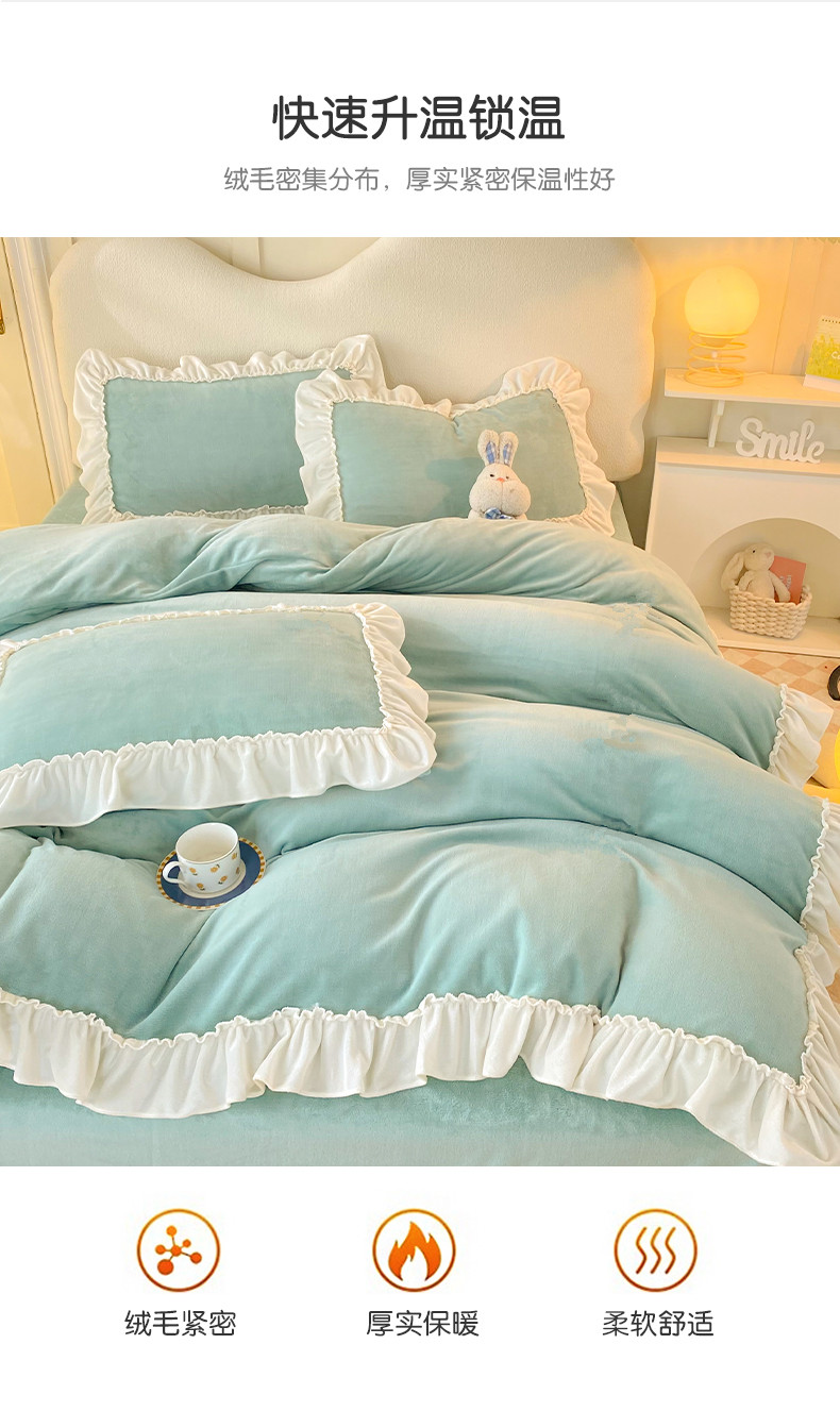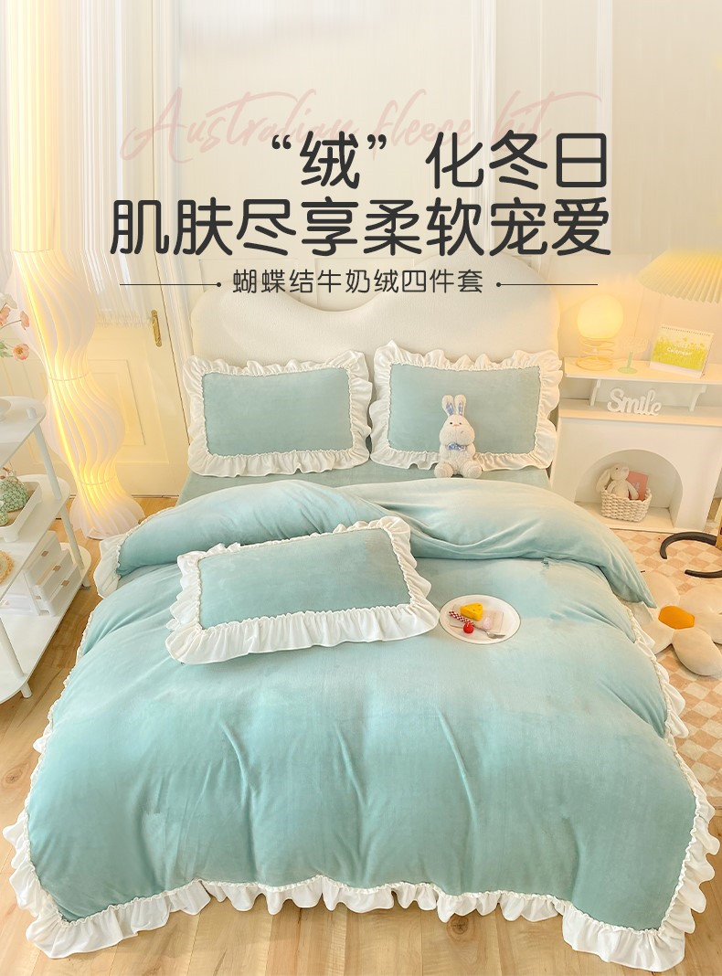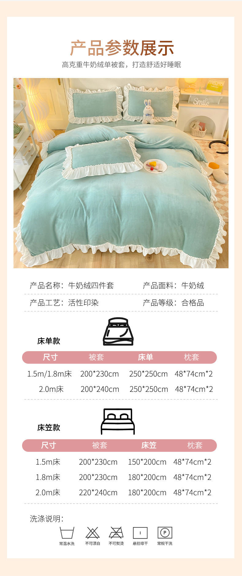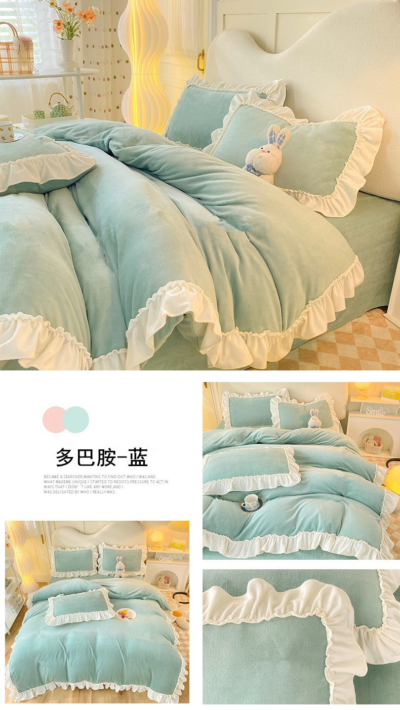 商品名称:花香四季家纺 2024新款牛奶绒多巴胺系列四件套 蓝